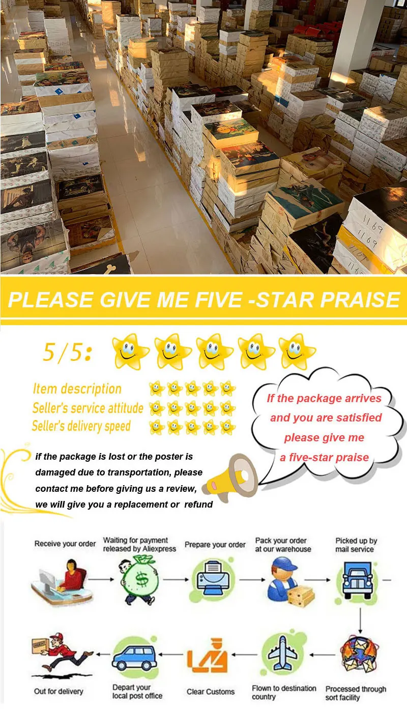1. Если продукт, который вы получили, поврежден во время транспортировки, пожалуйста, не оставляйте нам плохой отзыв немедленно, вы можете связаться с нами, чтобы решить эту проблему. 2. Если ваше время подтверждения истекает, и вы все еще не получили товар, пожалуйста, свяжитесь с нами, мы продлим дату доставки как можно скорее. 3. Пожалуйста, не открывайте споры в течение 60 дней. Если вы все еще не получили товар через 65 дней, пожалуйста, свяжитесь с нами, чтобы решить эту проблему. Информация о продукте: 1. Материал: 150 г ретро крафт-бумага, без покрытия, не водонепроницаемая 2. Цвет: постеры 100% реальности, но из-за разного отображения изображения реальности цвет difterence, поэтому, скорее всего, получите плакаты, и вы увидите, что фотографии в цвете отличаются. Фактический относительный дисплей плаката будет слегка желтоватым 3. Погрешность в 1-2 см, измеренная вручную, находится в пределах нормального диапазона.