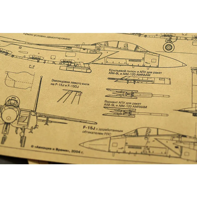 Картина из крафт-бумаги в стиле ретро с изображением истребителя макдонелла Дугласа