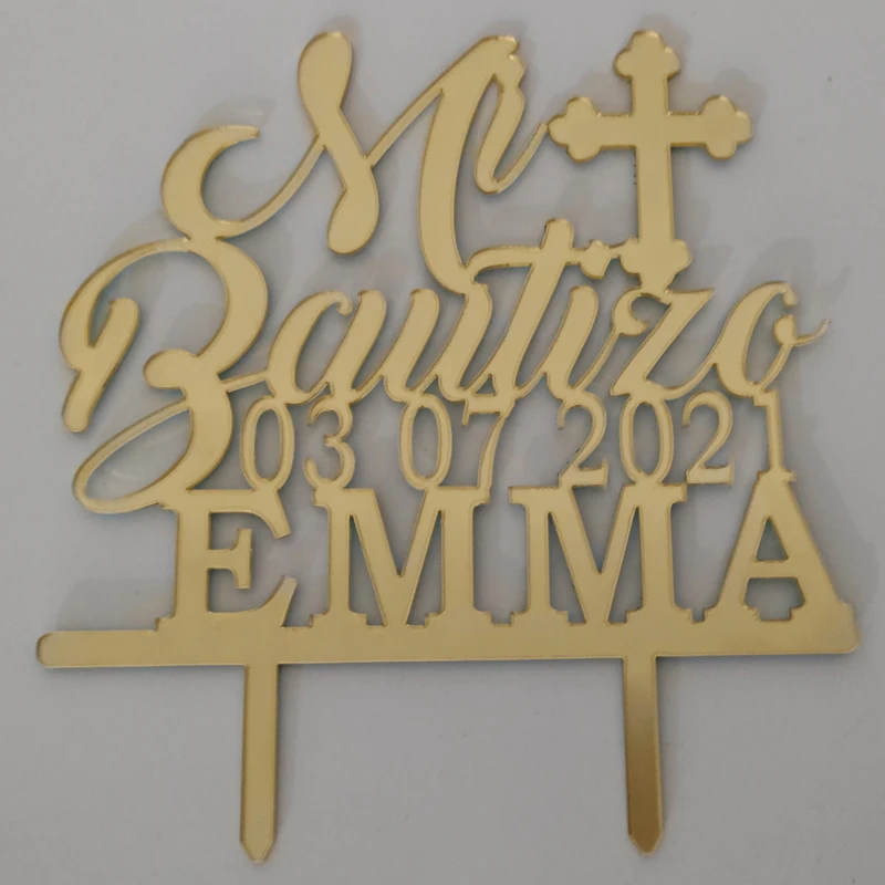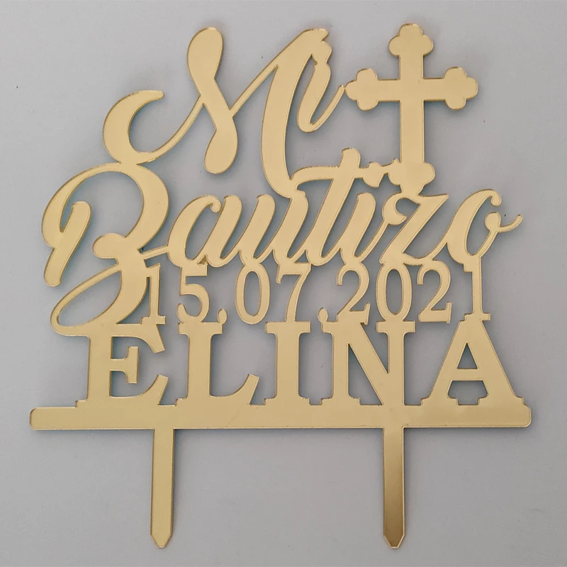 Персонализированный Топпер для торта на крещение, с именем на заказ, даты крещения, испанский Топпер Mi Bautizo для детей, украшение для торта на крещение