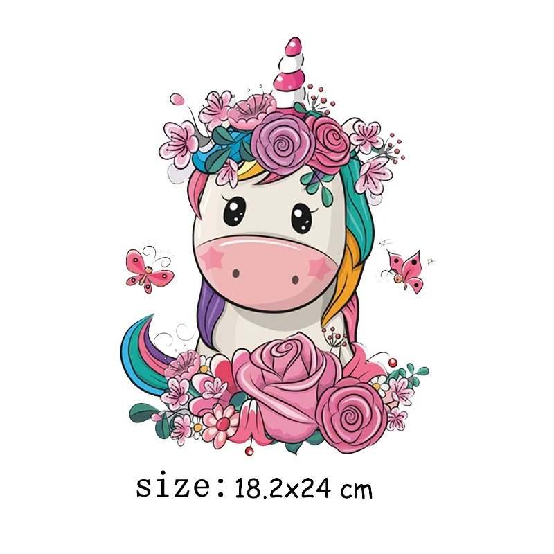Сделай сам, для переноса утюгом для одежды с милой розой и нашивка единорога гладильная наклейки легко виниловый распечатанный Передачи Аппликация нашивки на одежду