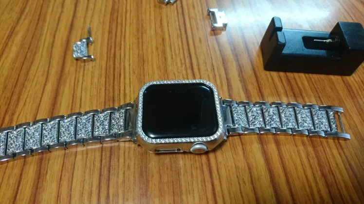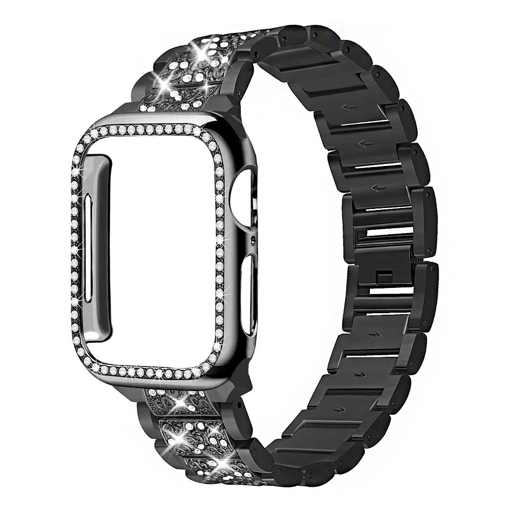 Металлический Алмазный ремешок + чехол для Apple Watch SE 6 5 4 Band Стразы 40 мм 44 мм iWatch 38 мм 42 мм, женский браслет из нержавеющей стали