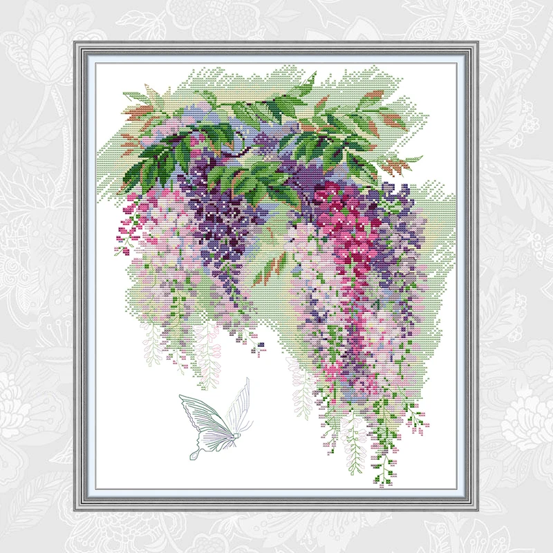 Joy Sunday Wisteria вышивка крестиком с цветами 14CT печать холст 11CT белая ткань вышивка ручной работы наборы крестиков