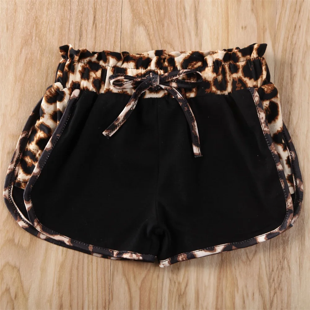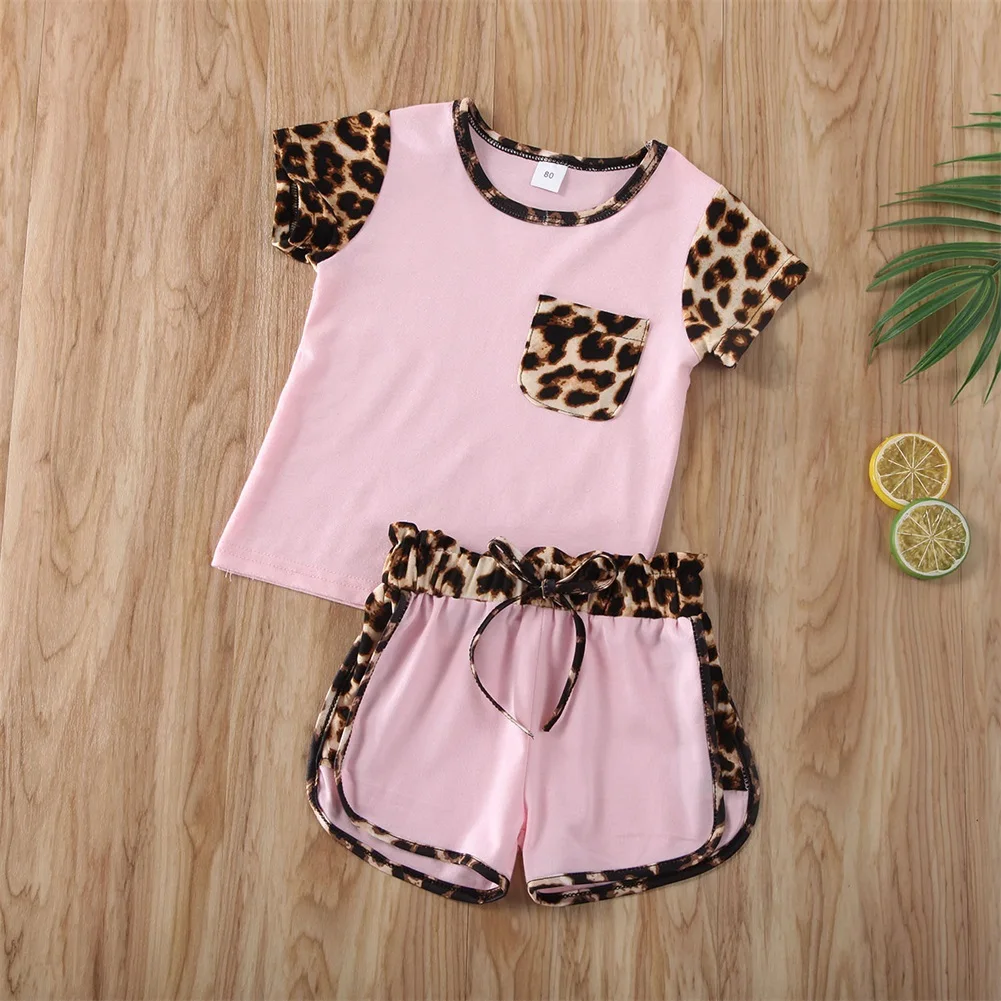 Леопардовые для малышей и девочек Футболка Топы + шорты одежда для детей, комплект одежды для маленьких девочек из 2-х предметов, комплект для новорожденных, Повседневная одежда