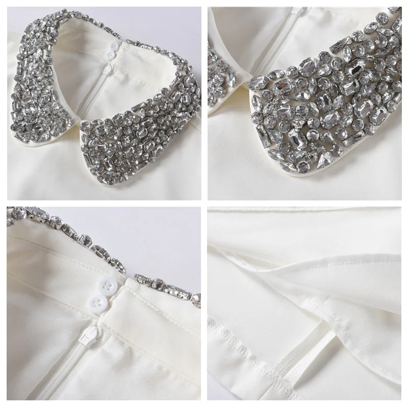 Женское Брендовое элегантное платье-трапеция, черно-белое платье мини с коротким рукавом и воротником из бисера, осень 2021
