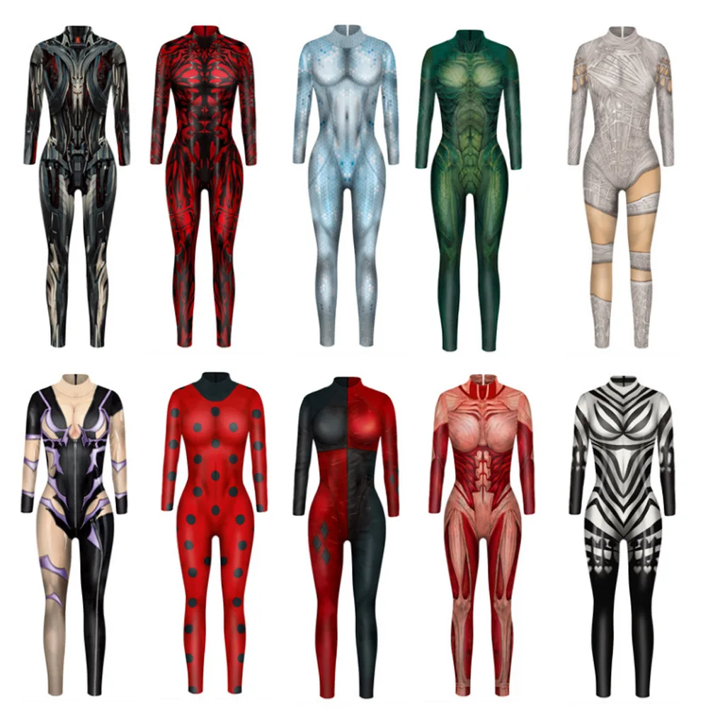 Костюм для косплея, с цифровым принтом, Облегающий комбинезон с дли...