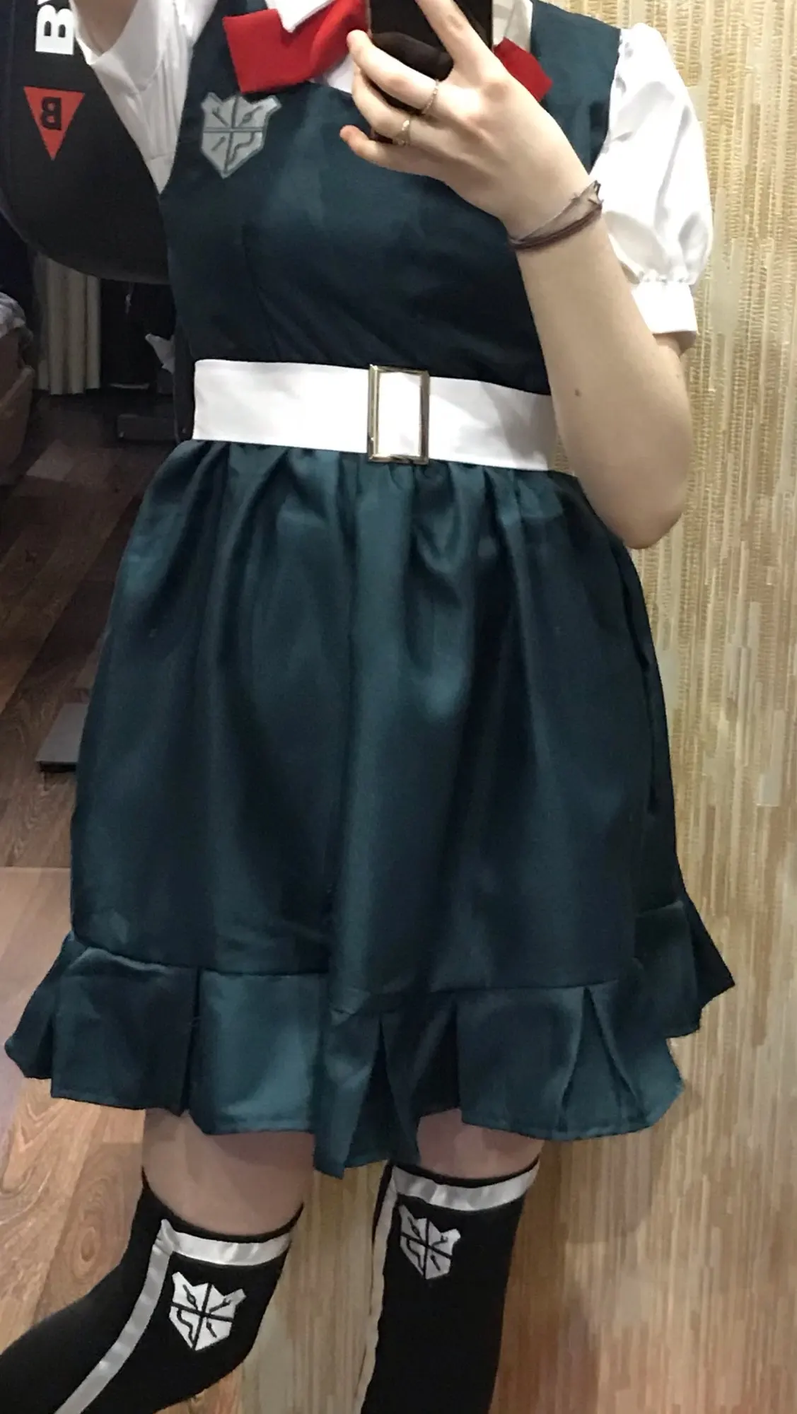 Это довольно хорошо по цене, но некоторые части: бант, носки и пояс не сделаны/переключались вправо. Я в порядке с этим, хотя я был в состоянии это исправить.