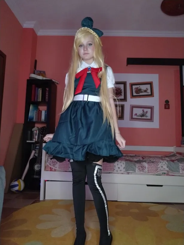 Косплей шёл около месяца. Само и платье и рубашка хорошего качества, но мелкие детали вроде пояса и банта не очень. Пояс очень маленький, бант на большой булавке и одинаковые чулки