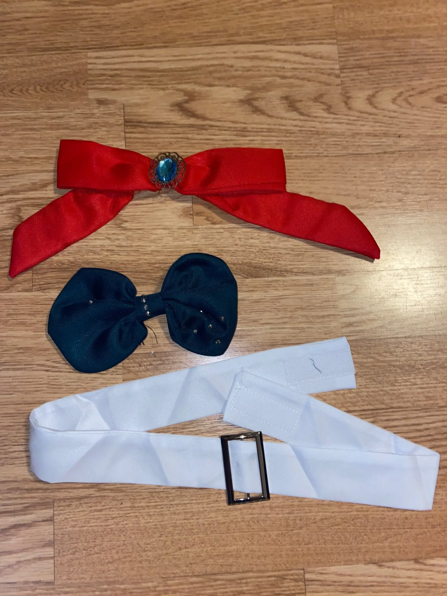So, the cosplay. Well, it is a cosplay. I'm staying pretty neutral about it. The hairbow is cute, nice reinstones, but you fasten it in the wig with a bobby pin. The shirtbow is really good quality, fasten with a safety pin. The belt is better than pictured, the buckle is made out of metal but you fasten it with velcro. So not so adjustable. The socks are badly made. If you have literally "normal" sized legs. They wont get on. Cuts of circulation by the kneecap. It's like the socks are made for your arms. The dress was ok! You will NEED a petticoat for it to be somewhat flattering. And the shirt, if you have "normal" arms. This shirt won't fit. At all. But out of the 9 parts of the cosplay, only 2 were bad/could improve. I will have to adjust a few things to make it fit/be wearable. Other than that! Really like it! :)