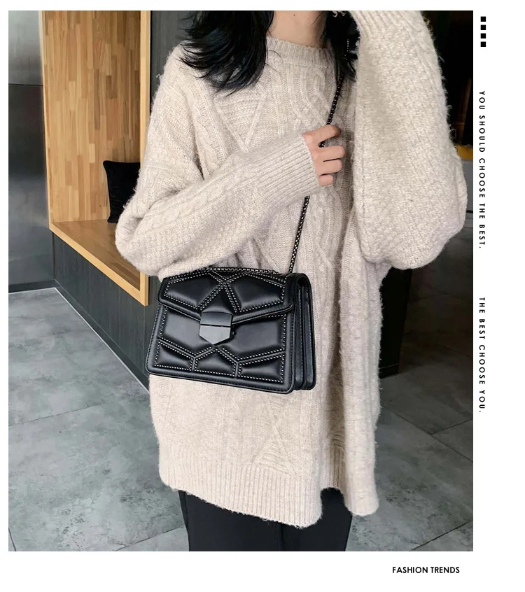 2020 модные женские сумки, женские сумки на цепочке, маленькие сумки-мессенджеры с клапаном, Женская универсальная сумка на плечо с заклепками