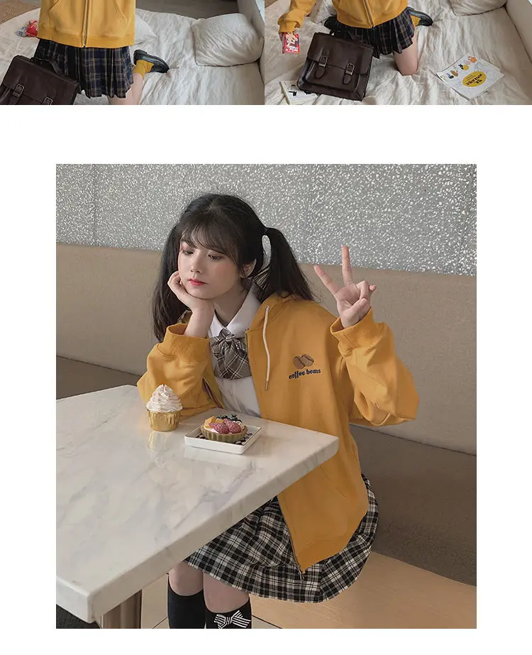 Куртки женские 2020 осенние свободные на молнии шикарные для отдыха Kawaii японский стиль с капюшоном милые девушки хлопок женская верхняя одежда новые модные топы