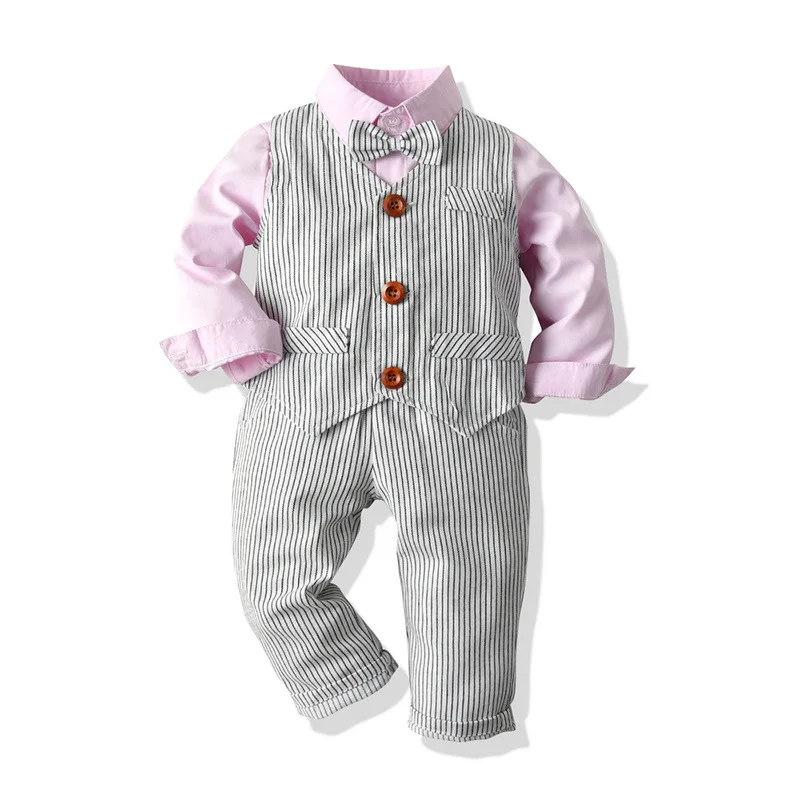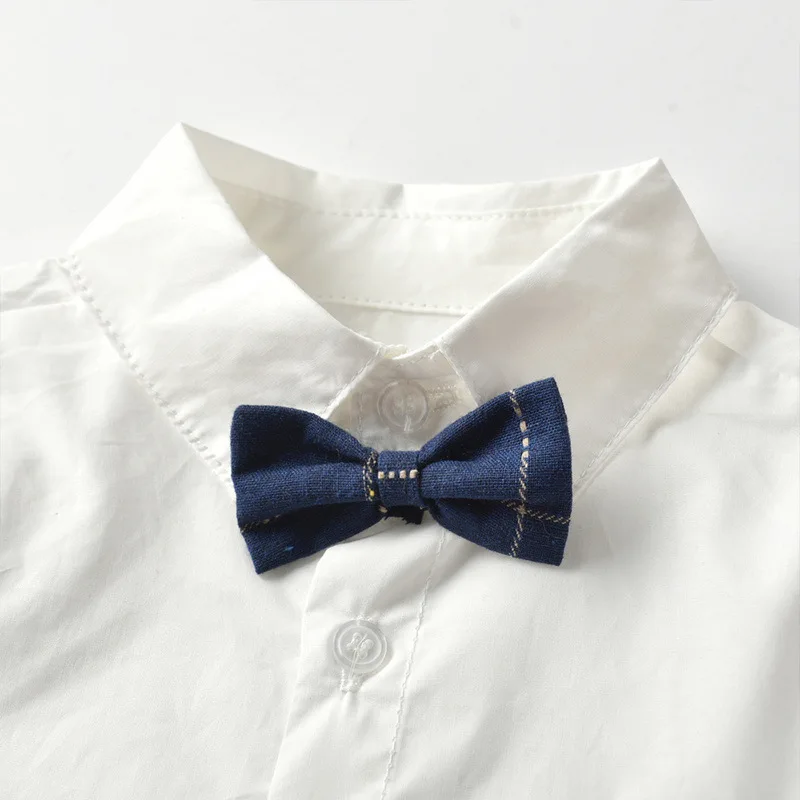 Одежда для маленьких мальчиков костюм для дня рождения синий галстук для мальчиков, рубашка, жилет, штаны осенний комплект одежды для малышей