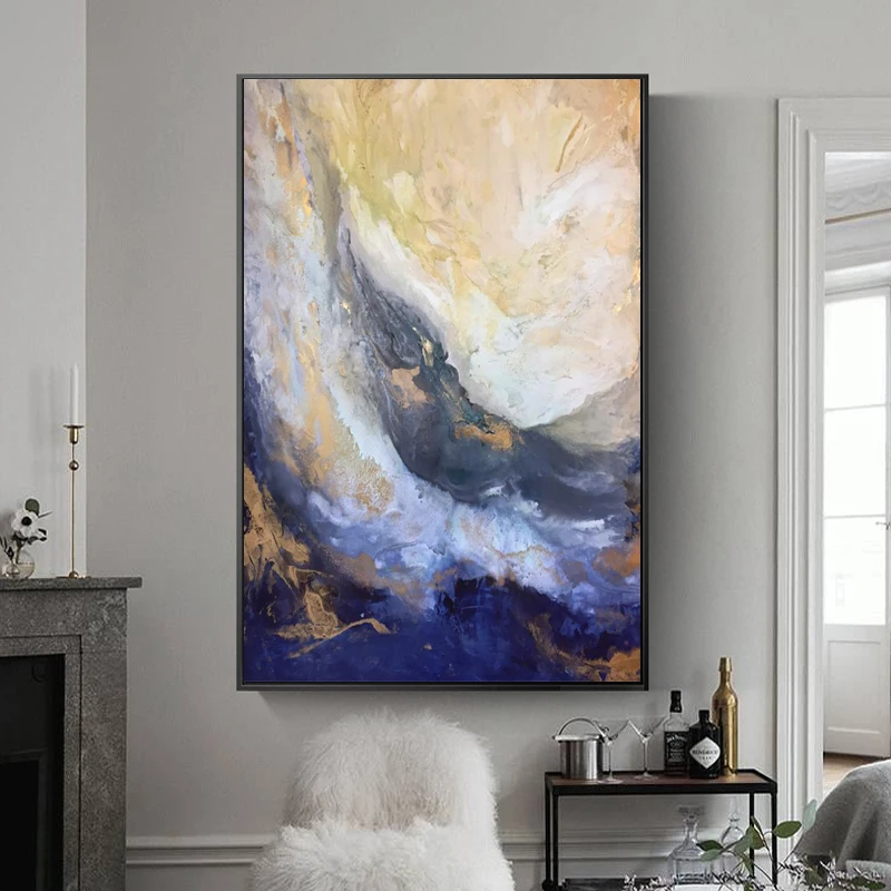 Настенная картина на холсте, абстрактная Современная синяя атмосферная живопись маслом в скандинавском стиле, для гостиной, украшение для дома