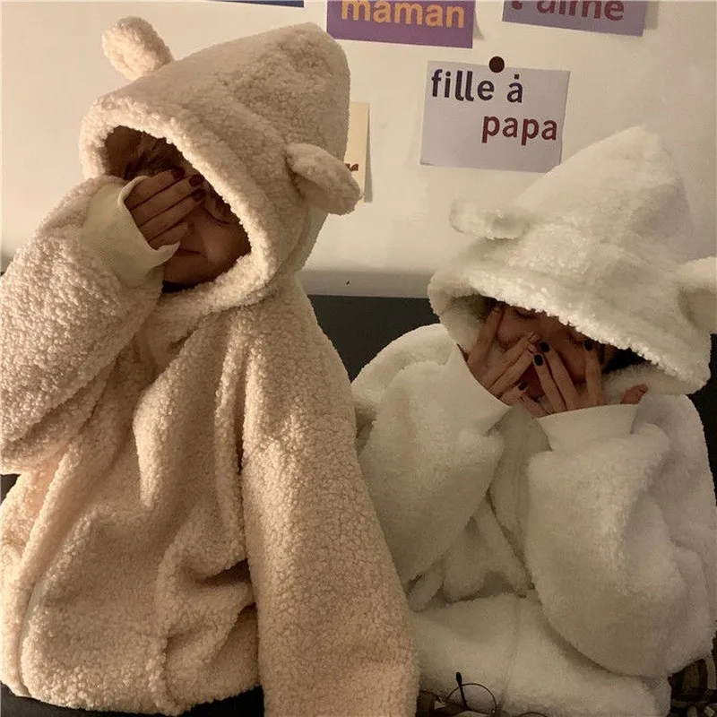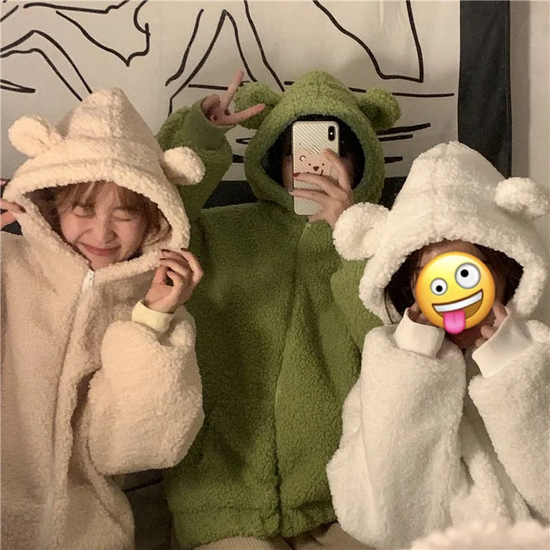Корейские модные осенне-зимние толстовки с милыми медвежьими ушками...