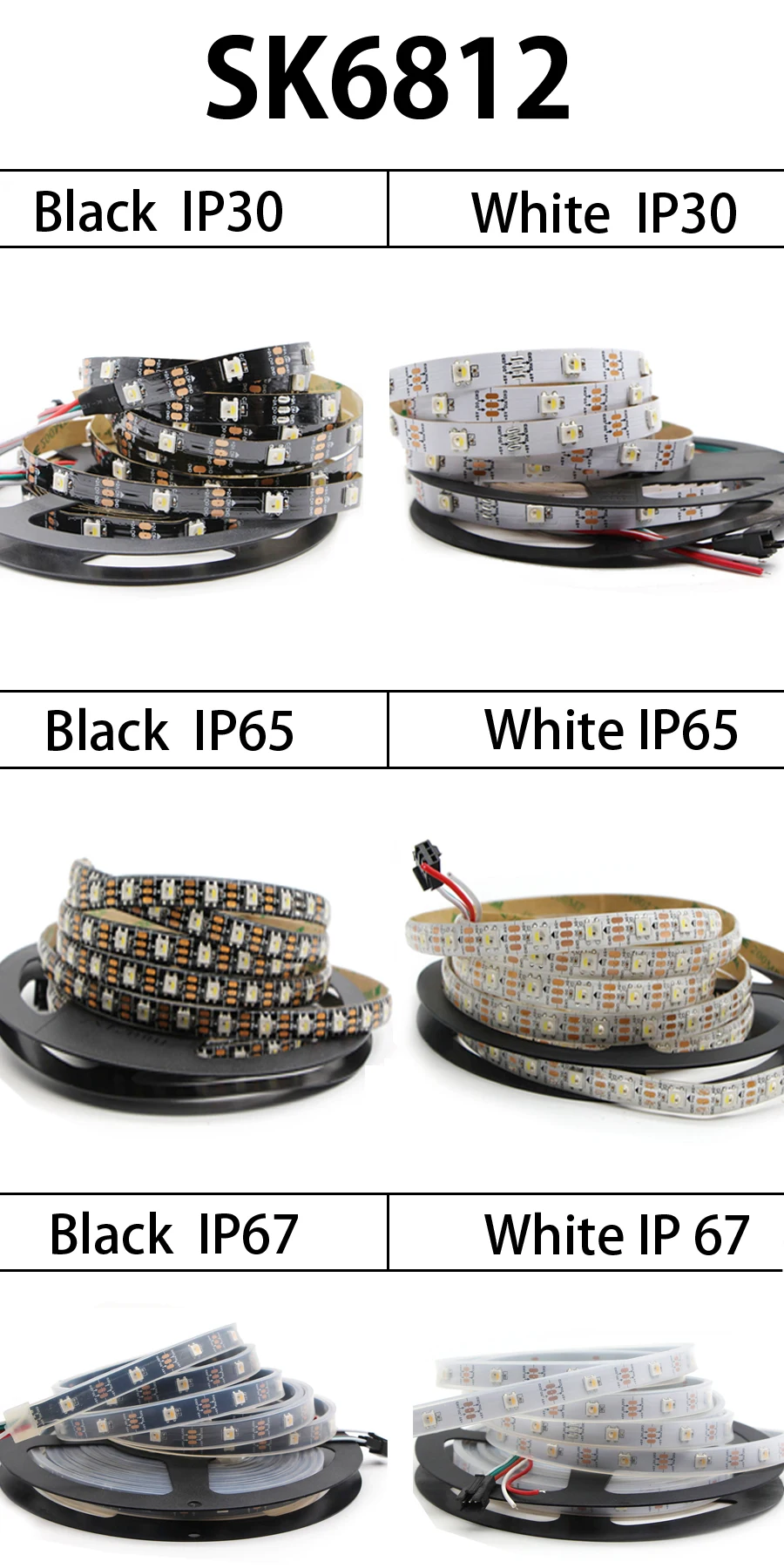 ПродуктыСветодиодная лента 5 в SK6812 WW/NW/CW:Примечание:Цена только Светодиодная лента, не включает блок питания или светодиодный контроллер!SK6812 должен использовать блок питания DC5V и светодиодный контроллер управления для управления! Каждый 0,5 метр с Паяные соединения, пожалуйста, обратите внимание! 30, 60,: 30 светодиодов/м, 60 светодиодов/мIP30: не водонепроницаемыйIP65: водонепроницаемое силиконовое покрытиеIP67: водонепроницаемый в силиконовой трубке(RGBCW 6000-6500K ;RGBWW 2700-3000K ; RGBNW 4000-4500K)Длина по вашему выбору Светодиодный источник: 5050SMD RGBW встроенный микросхема SK6812Напряжение (постоянный ток):5 ВМощность:30 светодиодов/метр --------- 9 Вт/м60 светодиодов/метр --------- 18 Вт/мТип светодиодный: SMD5050Тип ИС: SK6812 WW SK6812 NW SK6812 CWСветодиодный/на метр: 30, 60, светодиодный s/метр (Каждый светодиодный Светодиодный индикатор управляется отдельно)IC/на метр: 30, 60,IC/метр (1 IC дисков 1 led чип)Пиксели/на метр: 30, 60144 пикселей/метрСерый класс: 256Цвет: RGBW (WW 2700-3000K ; CW 6000-6500K;NW 4000-4500K)Цвет печатной платы: белый/черныйКласс водонепроницаемости:IP30-----NON ВодонепроницаемостьIP65 ----- эпоксидная смолаIP67 ----- силиконовая трубкаIP30,IP65, есть пленкой длиной 3 м клейкая лента на задней стороне. Вы можете легко установить Применение:Подходит для украшения автомобиля и велосипеда, пограничного или контурного освещенияШироко используется для украшения дома, отелей, клубов, торговых центровАрхитектурное декоративное освещение, изысканное атмосферное освещениеШироко применяется при заднем освещении, скрытом освещении, освещении с буквенным каналомАварийное и безопасное освещение, рекламный знак освещенияДекоративные светильники для праздника, события, выставки