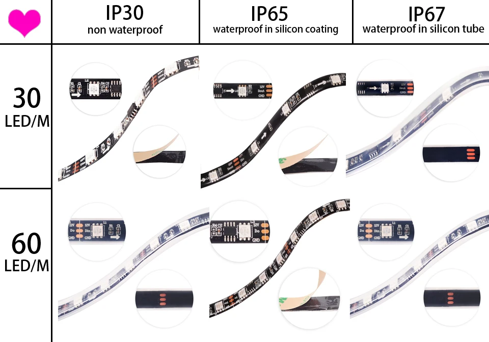 Спецификации (светодиодная лента/м)30leds/m,60eds/m
