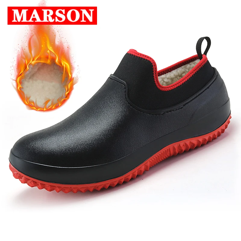 Мужская обувь, оригинальная хлопковая Нескользящая водонепроницаемая обувь шеф-повара, повседневная рабочая обувь унисекс, обувь для воды, сапоги из хлопка для дождя