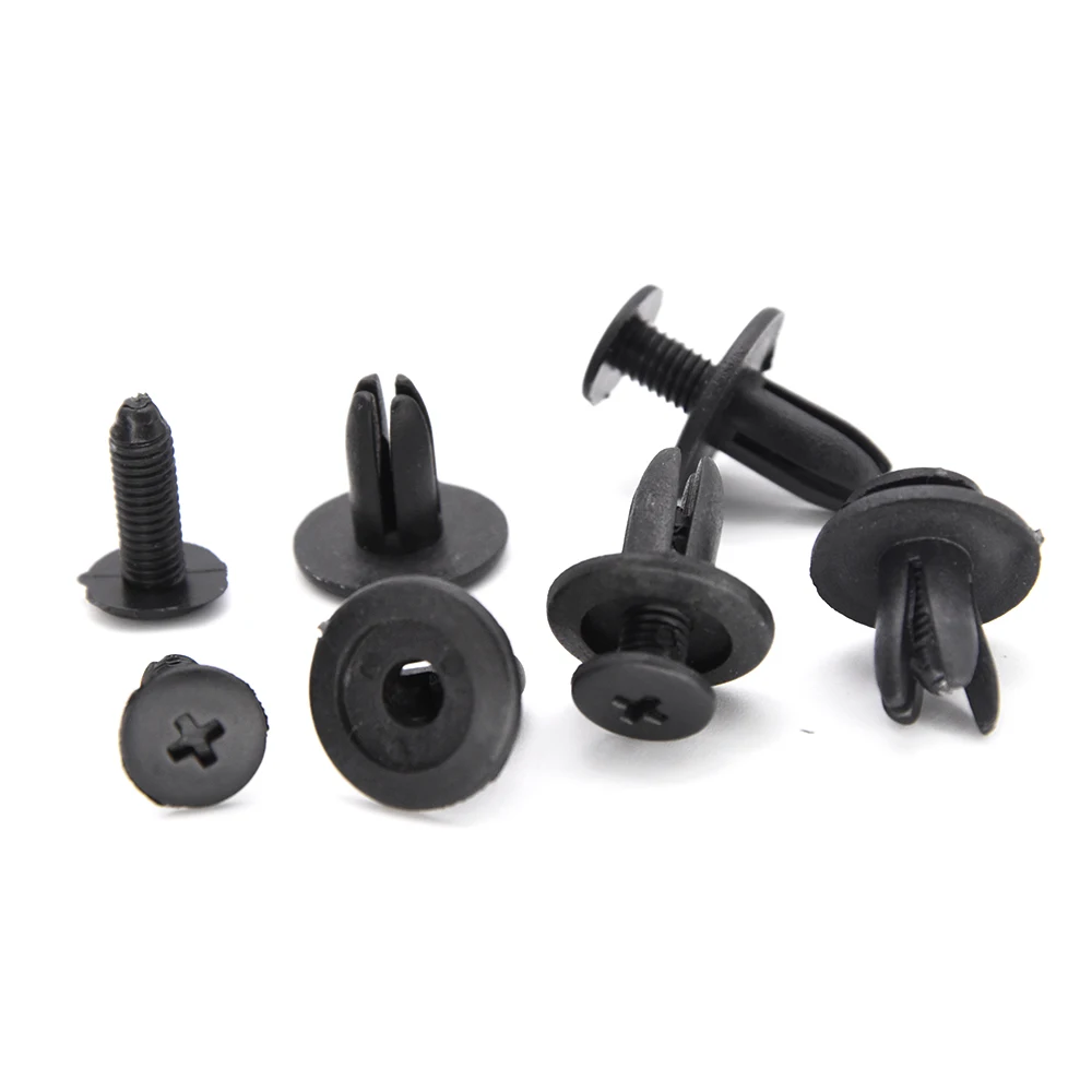 1. Эти заклепки изготовлены из нейлонового материала, подходит для использования в автомобиле. 2. Автомобильные хорошие аксессуары, обычно используются для установки боковых юбок, бамперов и другой отделки. 3. Заменяет Заводские штифтовые заклепки на многих марок автомобилей.