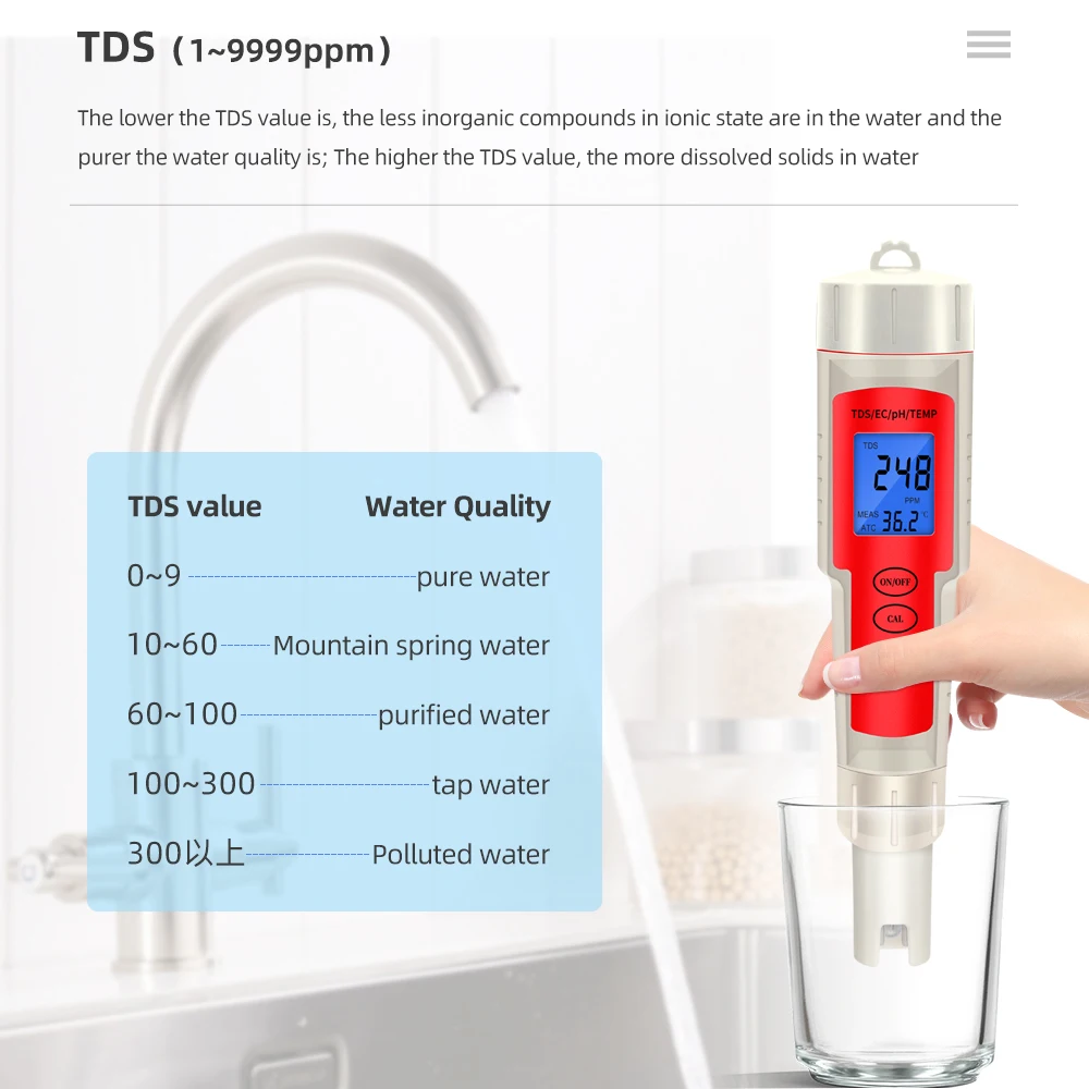 Широкое использование: Карманный измеритель PH TDS является идеальным тестовым комплектом для домашнего и лабораторного использования. Идеально подходит для тестирования воды, бассейнов, аквариумов, спа, гидропоники, продуктов питания, вина и пива и многого другого.