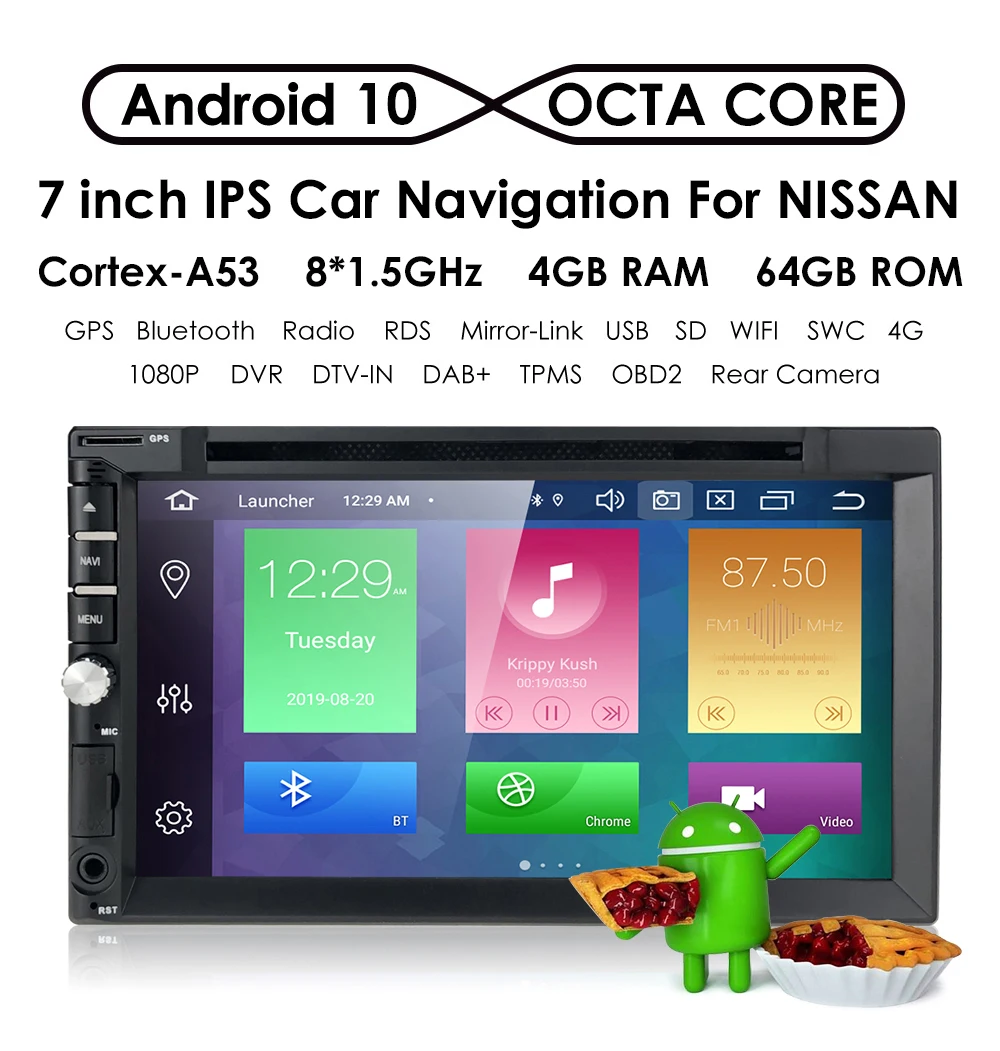 Универсальный автомобильный DVD-плеер, 7 дюймов, Восьмиядерный, 4 Г...