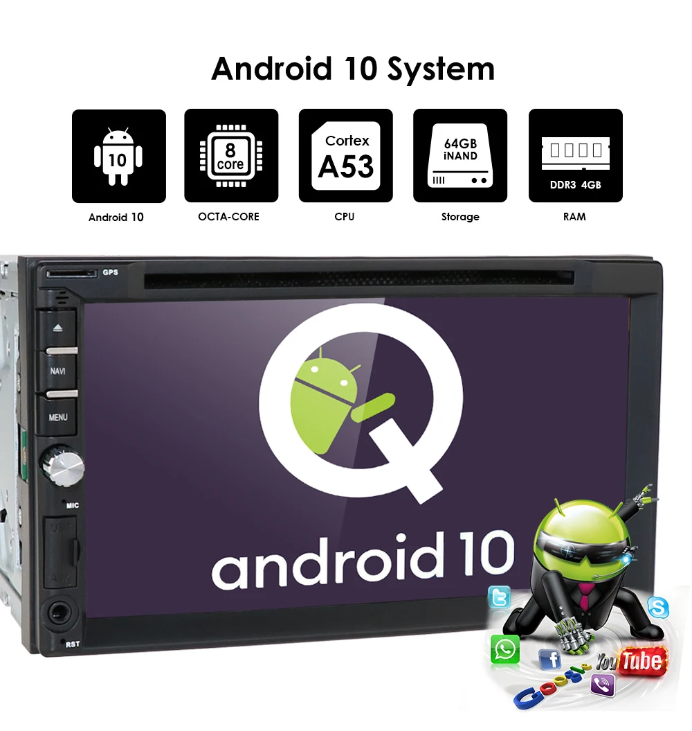Автомагнитола 2 DIN, 7 дюймов, Android 10, 4 + 64 ГБ, GPS, Wi-Fi, R...