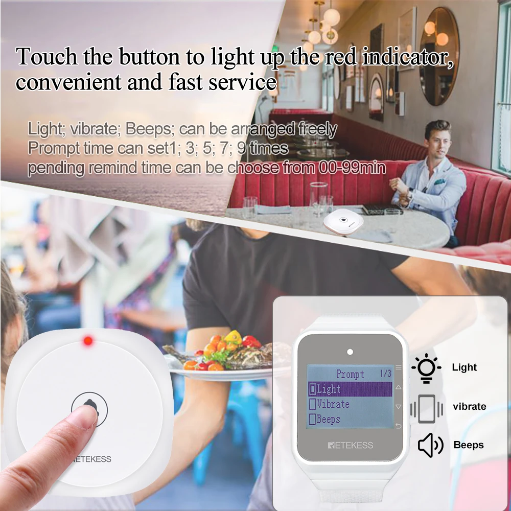 RETEKESS 5 шт. TD017 пейджер Беспроводная кнопка вызова сенсорный белый 433,92 МГц ресторанный передатчик для кофейни Отеля Больницы