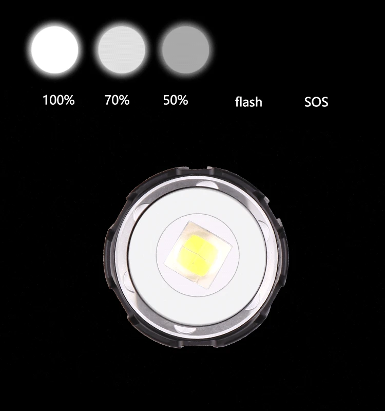 5 режимов переключения: 100% - 70% - 50%-вспышка-SOS