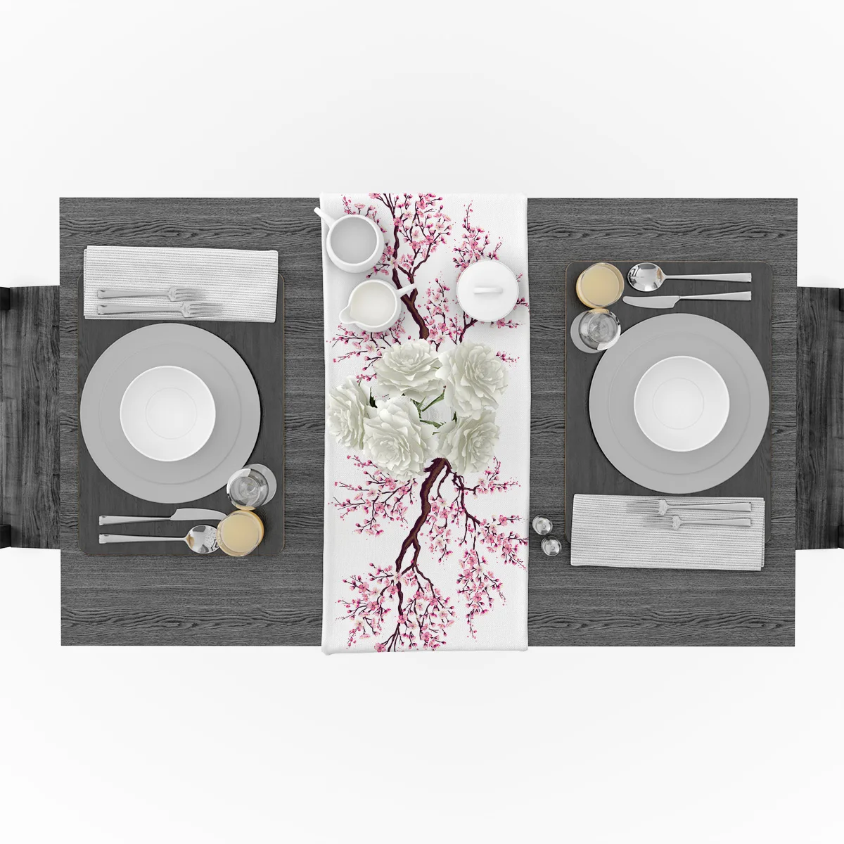 Розовая Вишня настольная дорожка с цветами домашняя кухня декоративная настольная дорожка для свадебной вечеринки торт Цветочная скатерть