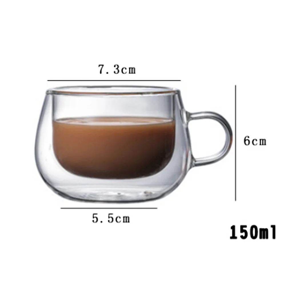 Стеклянная чашка с двойными стенками, термостойкая кружка для чая и кофе с ручкой, портативная прозрачная кружка для пива, стакан для виски, 150 мл