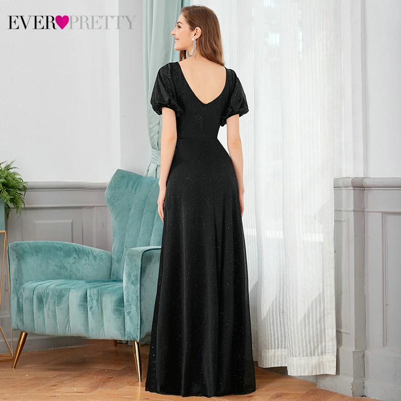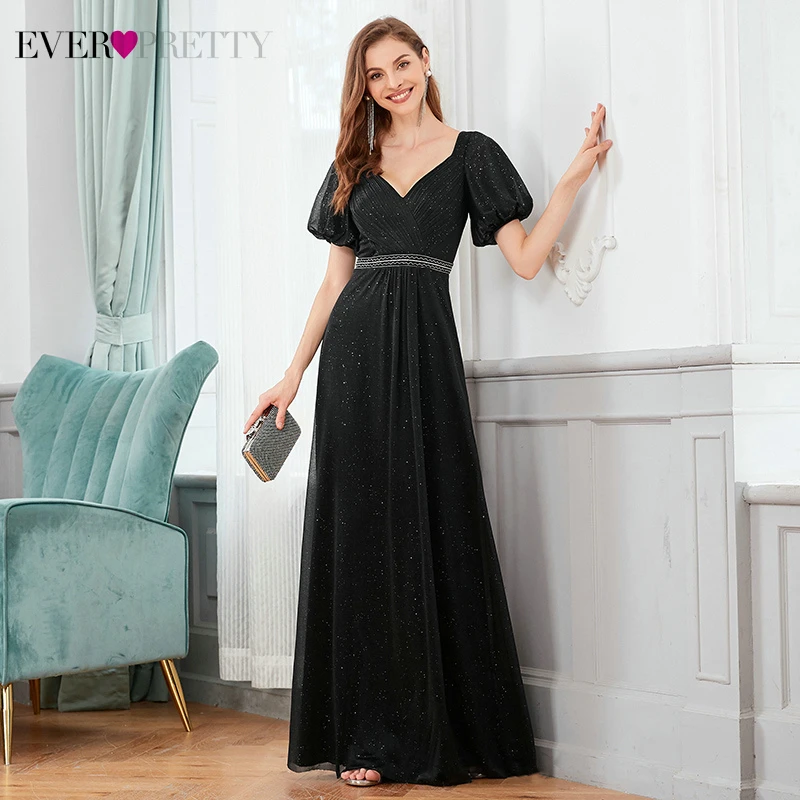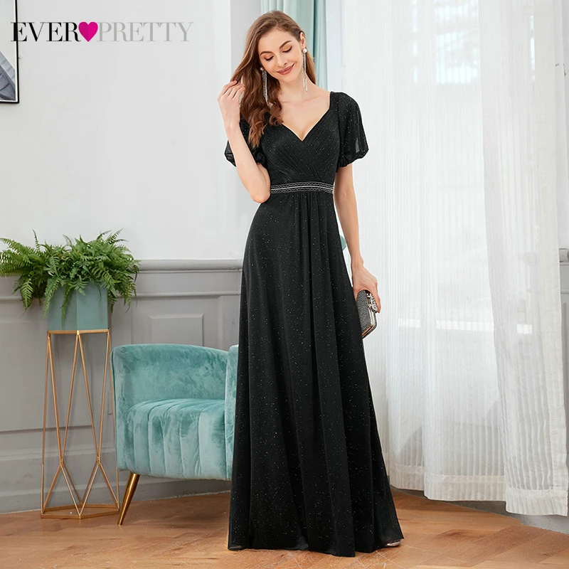 Черные вечерние платья Ever Pretty EP00431BK А-силуэта с коротким рукавом и двойным v-образным вырезом, плиссированные с рюшами, блестящие вечерние платья Vestidos 2020