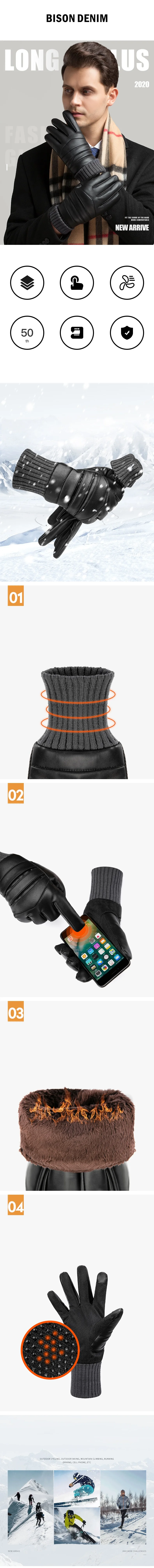 Перчатки мужские зимние из денима, с защитой от ветра, удлиненные, для сенсорного экрана, перчатки осень-зима, S051