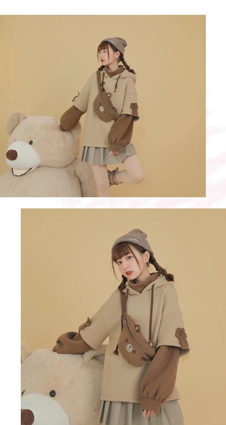 Свободный Топ в стиле девушки Мори из японского племени из двух частей, милый медведь с сумкой, Студенческая куртка