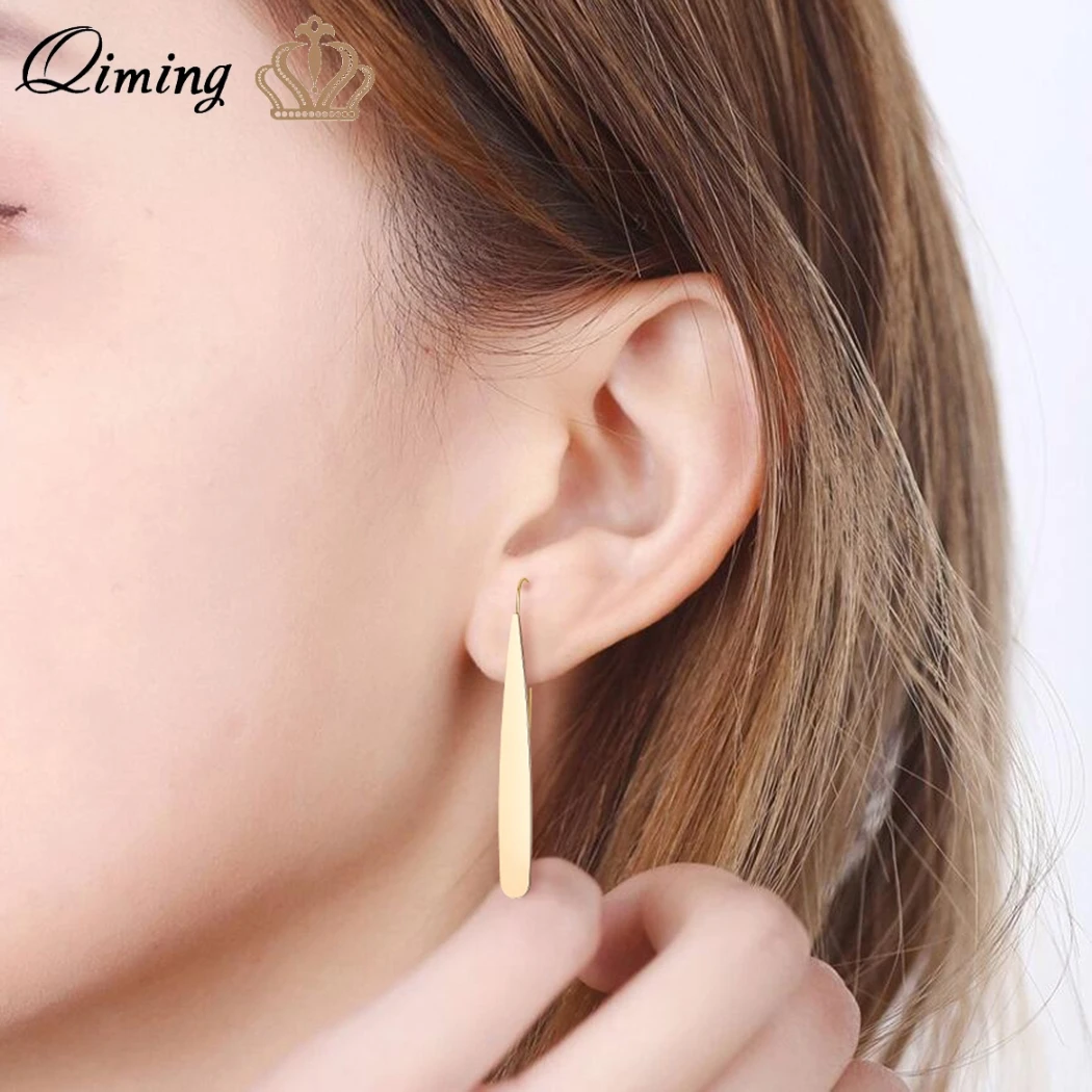 Женские серьги-подвески от магазина QIMING, простое, женские длинные Этнические Винтажные серьги золото серебро воротник