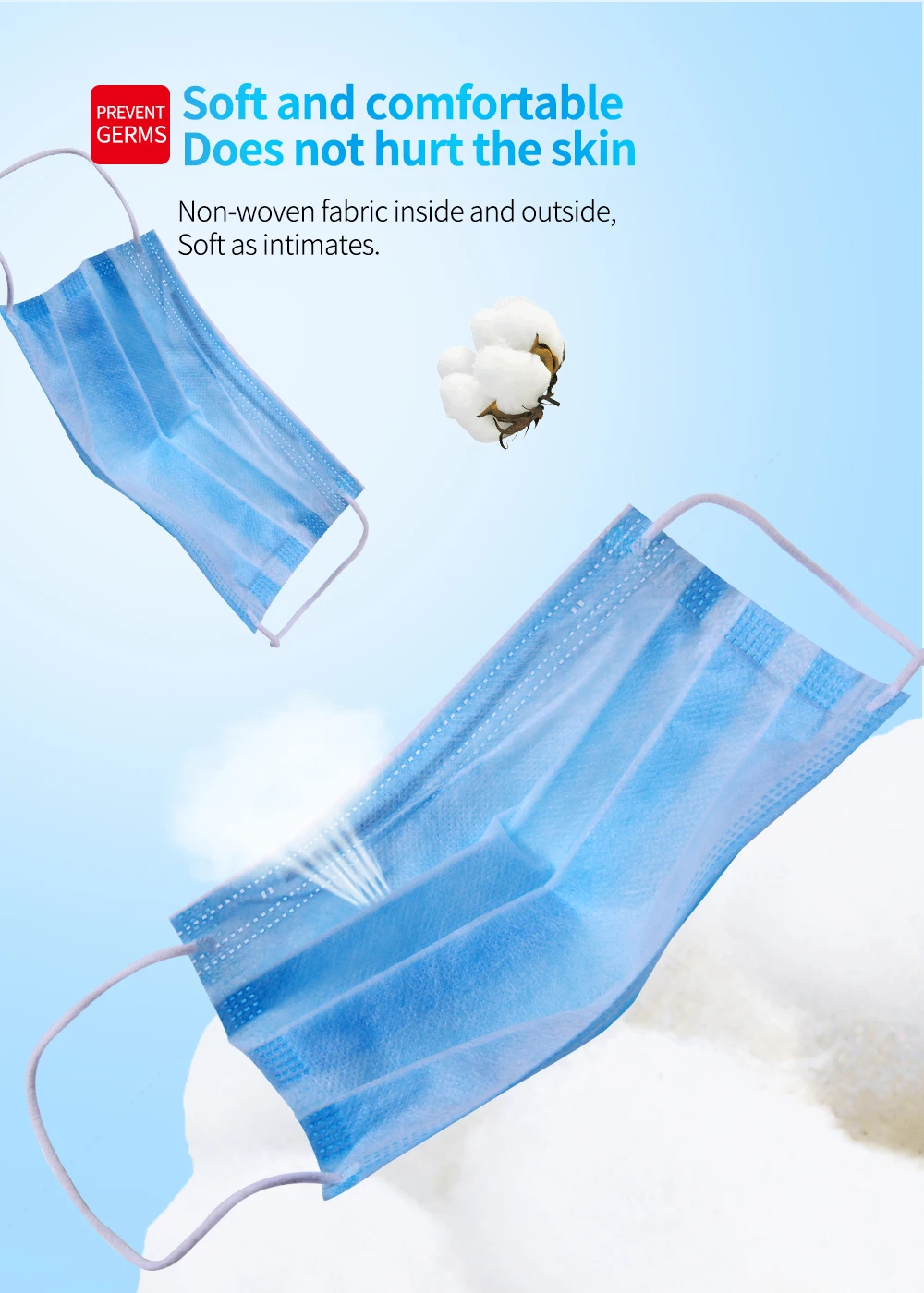 Маски одноразовые для взрослых, 3 слоя, дышащие, 50 шт.