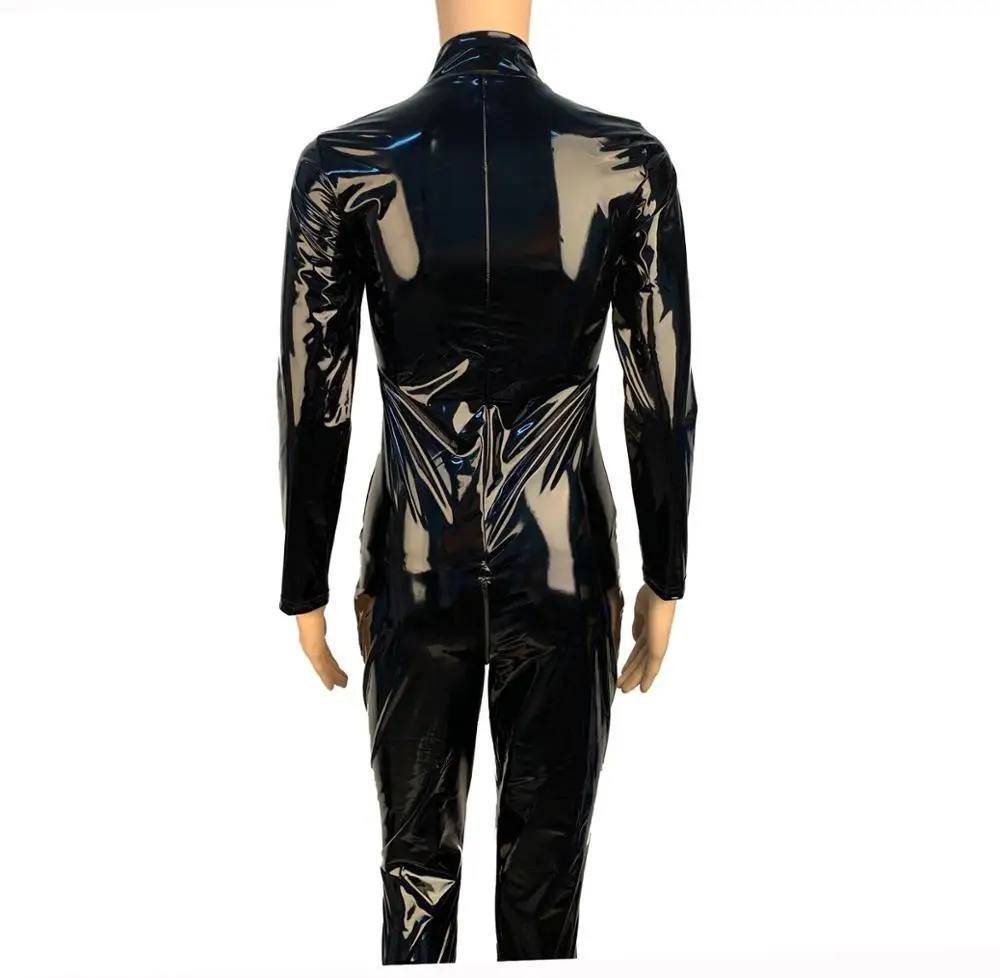 Комбинезон с длинным рукавом, блестящий ПВХ, S-5XL, размера плюс, О...