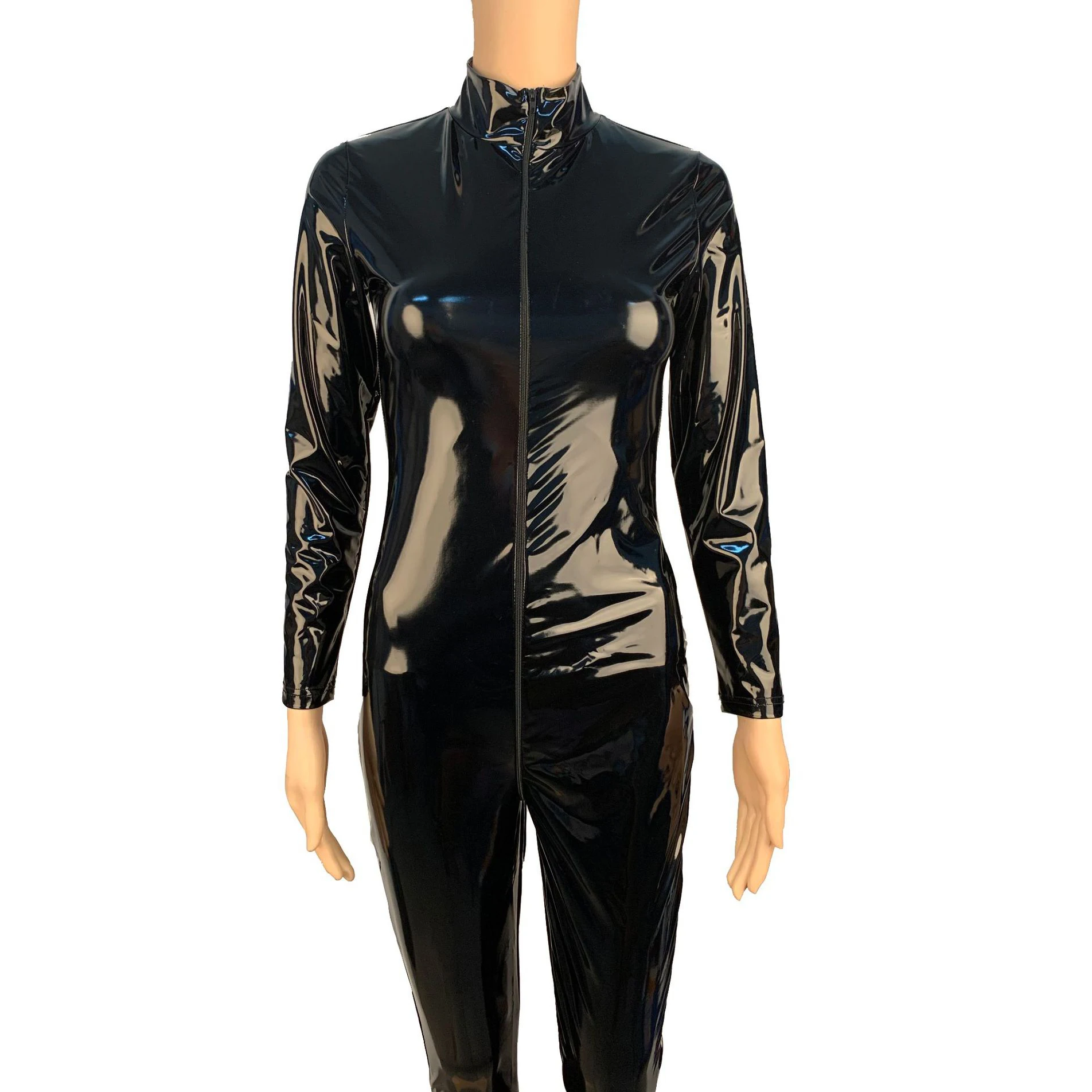 Блестящие Комбинезоны из лакированной кожи, женские Комбинезоны на ...