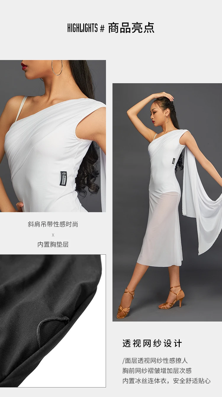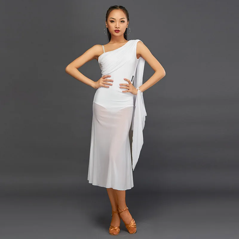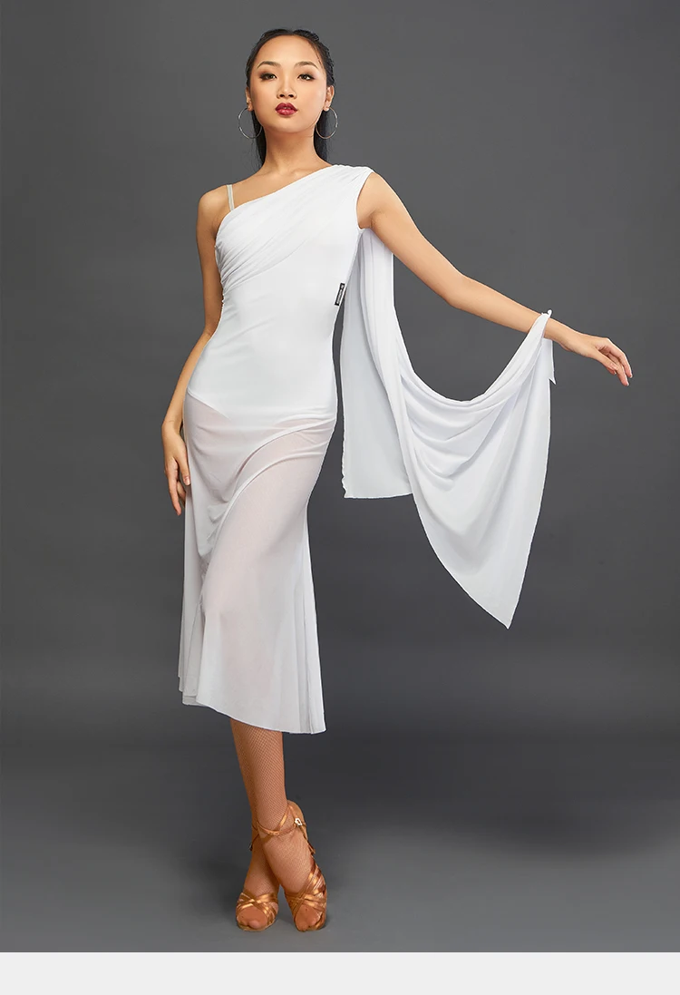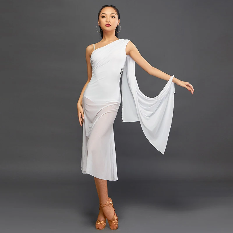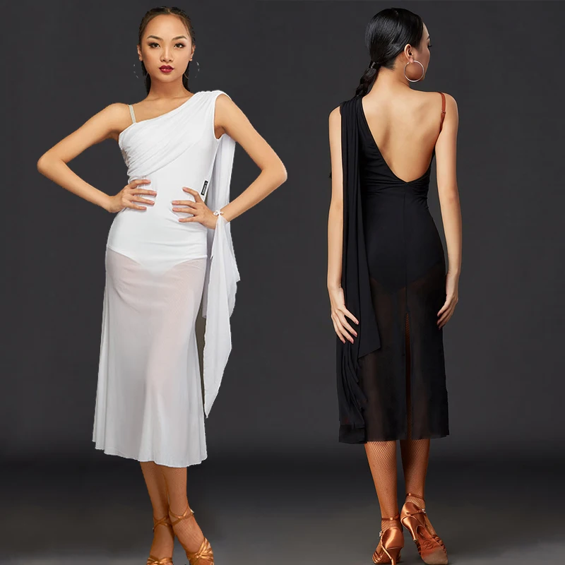Женское платье для латиноамериканских танцев, соблазнительное платье с косым плечом, платье для соревнований по латинскому танцу, ча-Румба, Самба, одежда для выступлений и танцев DQS5435