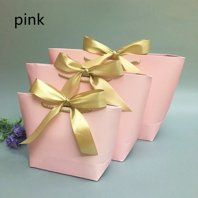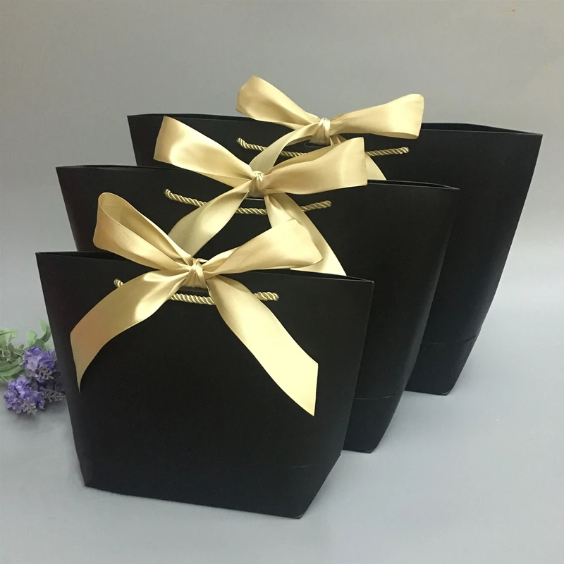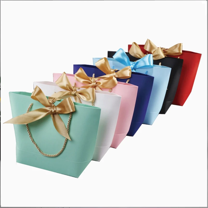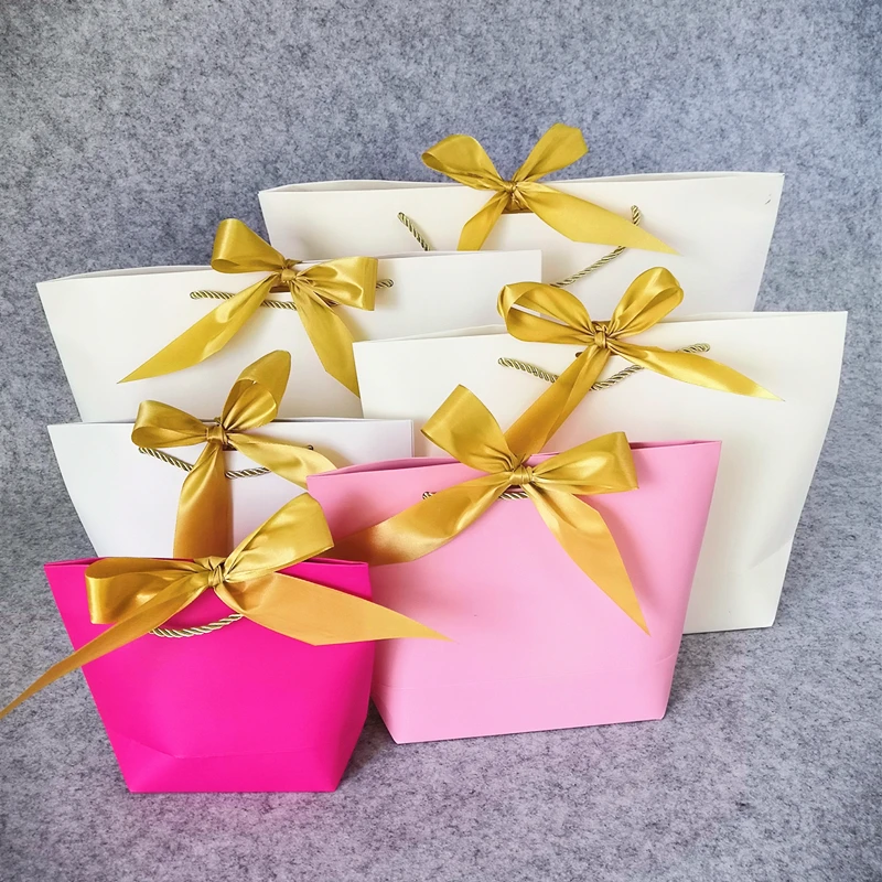 20 шт. в упаковке Подарочная сумка с бантом из ленты, перерабатываемые бумажные пакеты для одежды, праздничный декор с ручками для свадьбы, дня рождения