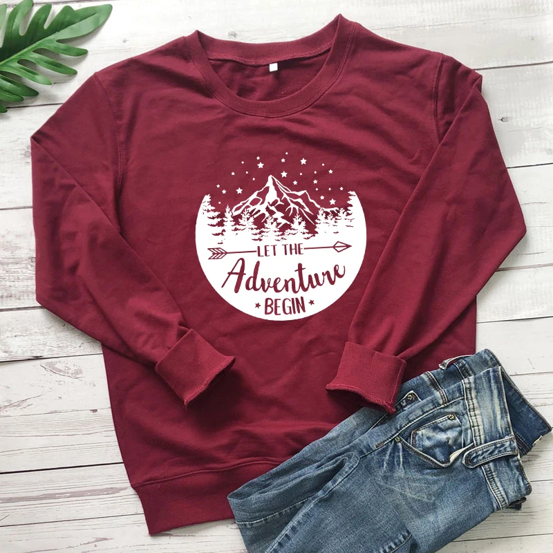 Пусть Приключения начнут Свитшот со стрелками эстетические походные пуловеры для активного отдыха модные женские графические свитшоты с длинным рукавом