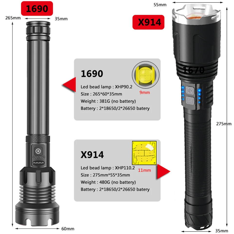 10-ядерный XHP110.2 самый яркий светодиодный фонарик с функцией внешнего аккумулятора, фонарик с Usb-зарядкой и аккумулятором 18650 26650, фонарик с зумом