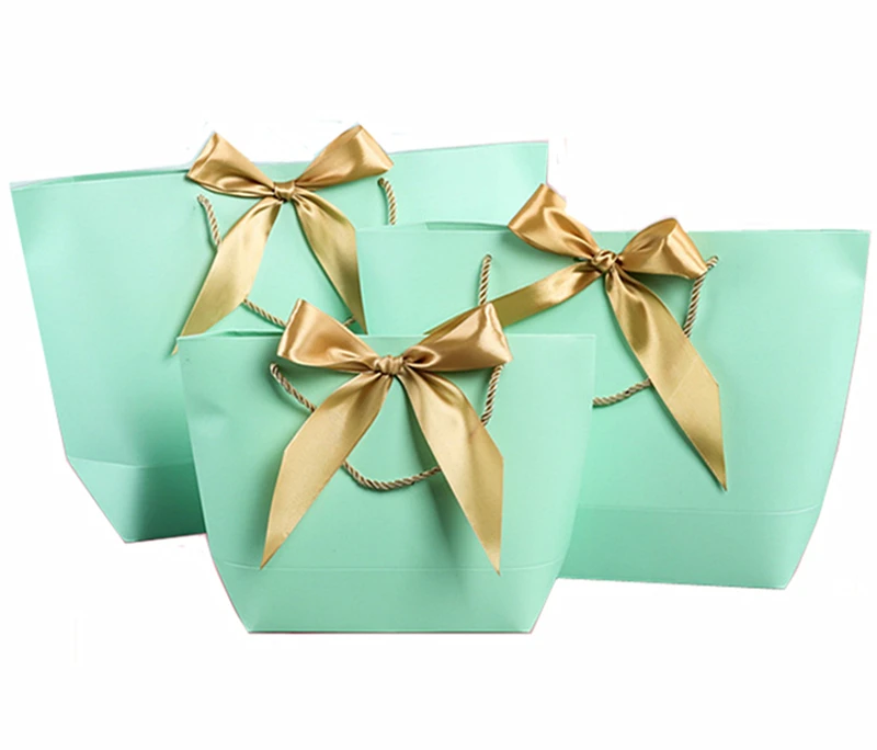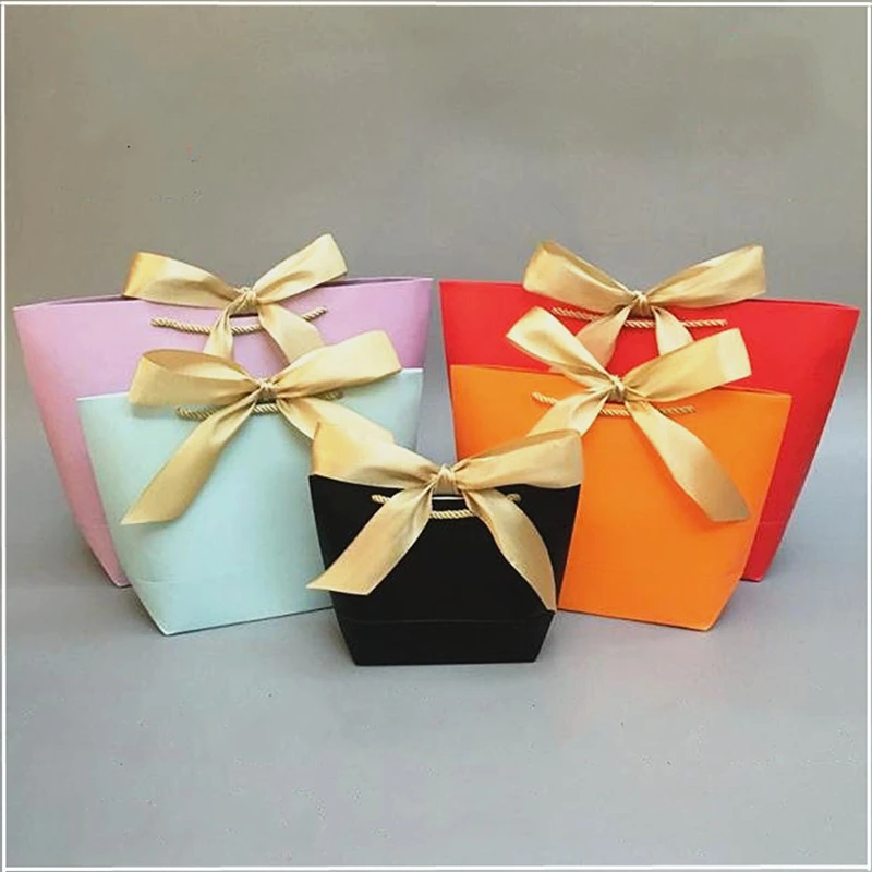 10 шт. в упаковке, подарочный пакет с бантом и лентой, перерабатываемые бумажные пакеты для одежды DIY, праздничный декор для свадьбы, дня рождения с ручками
