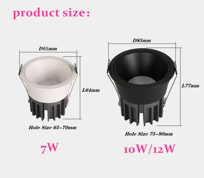Встраиваемый точечный светодиодный светильник COB 7 Вт, 10 Вт, 12 Вт, теплый белый свет, холодный белый свет