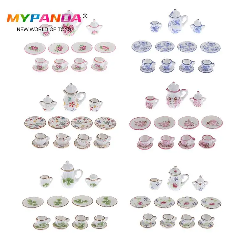 4 узора, 1:12, миниатюрный набор из 15 фарфоровых чашек для чая, ча...