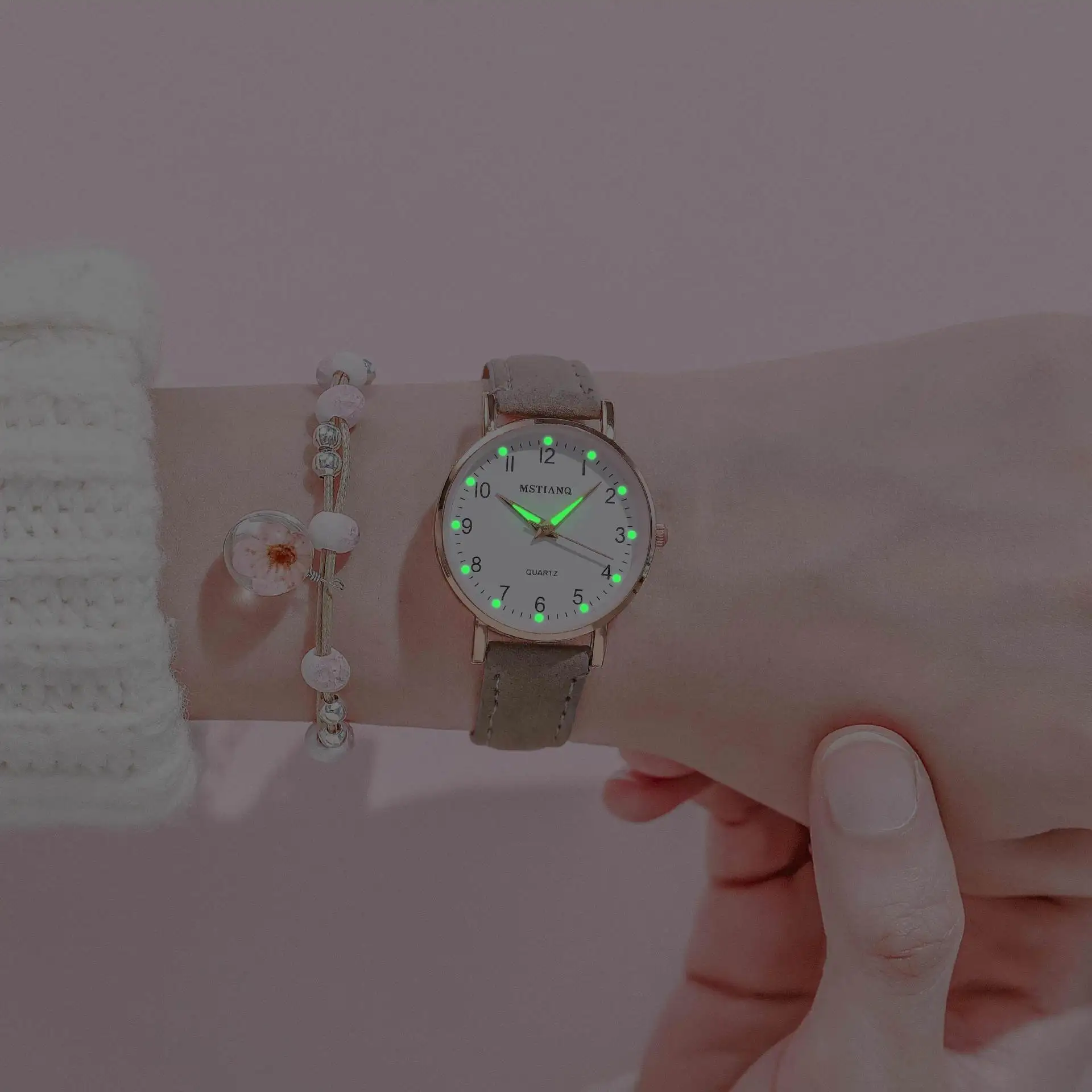 Женские часы, роскошные светящиеся наручные часы цвета розового золота, женские часы с кожаным ремешком, женские часы, 2021