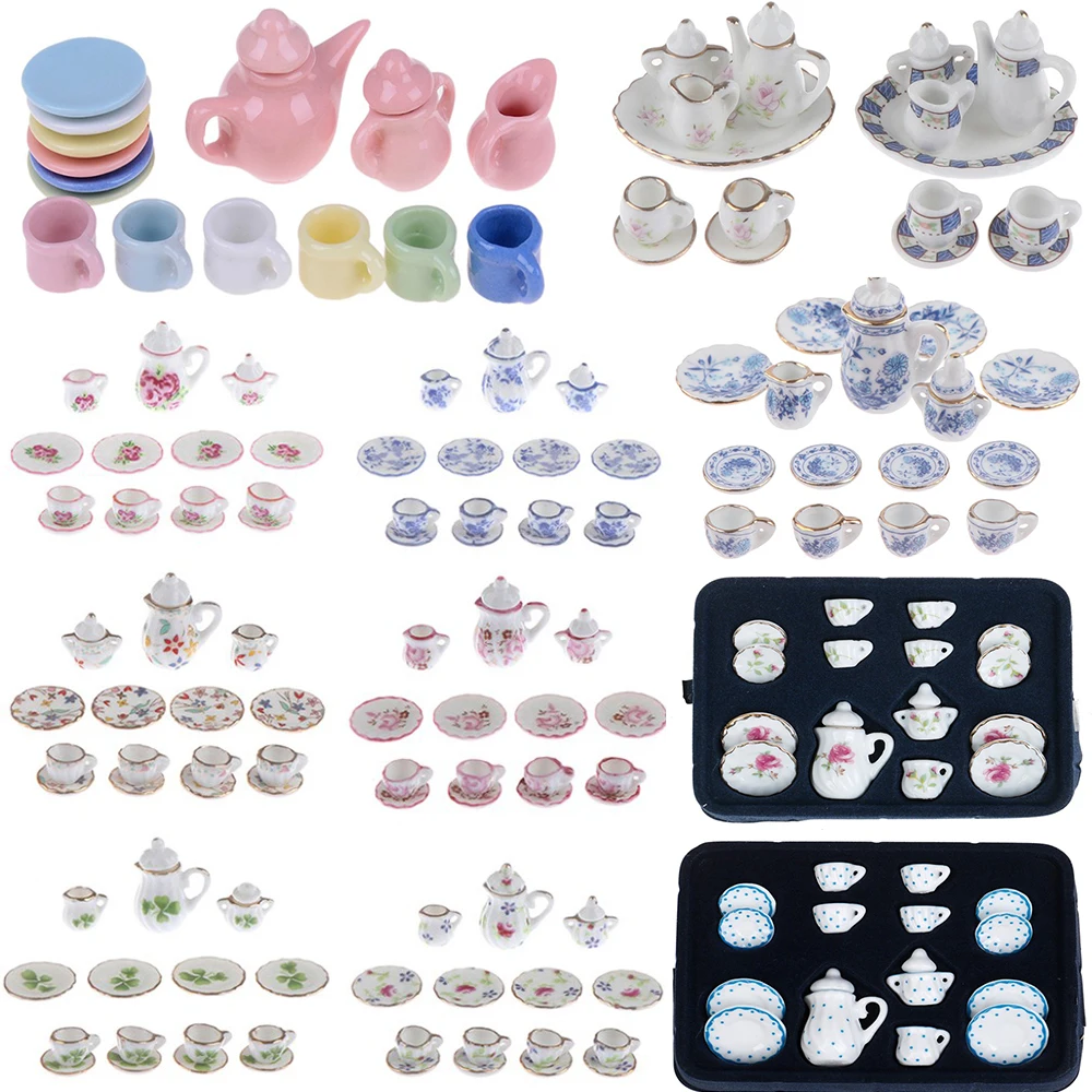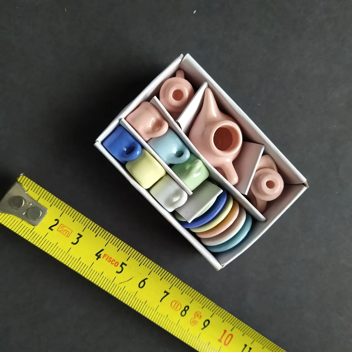 Набор керамических чашек в масштабе 1:12 для кукольного домика, Миниатюрный фарфоровый набор чайных чашек, посуда для кукольного домика, игрушки для самостоятельной сборки