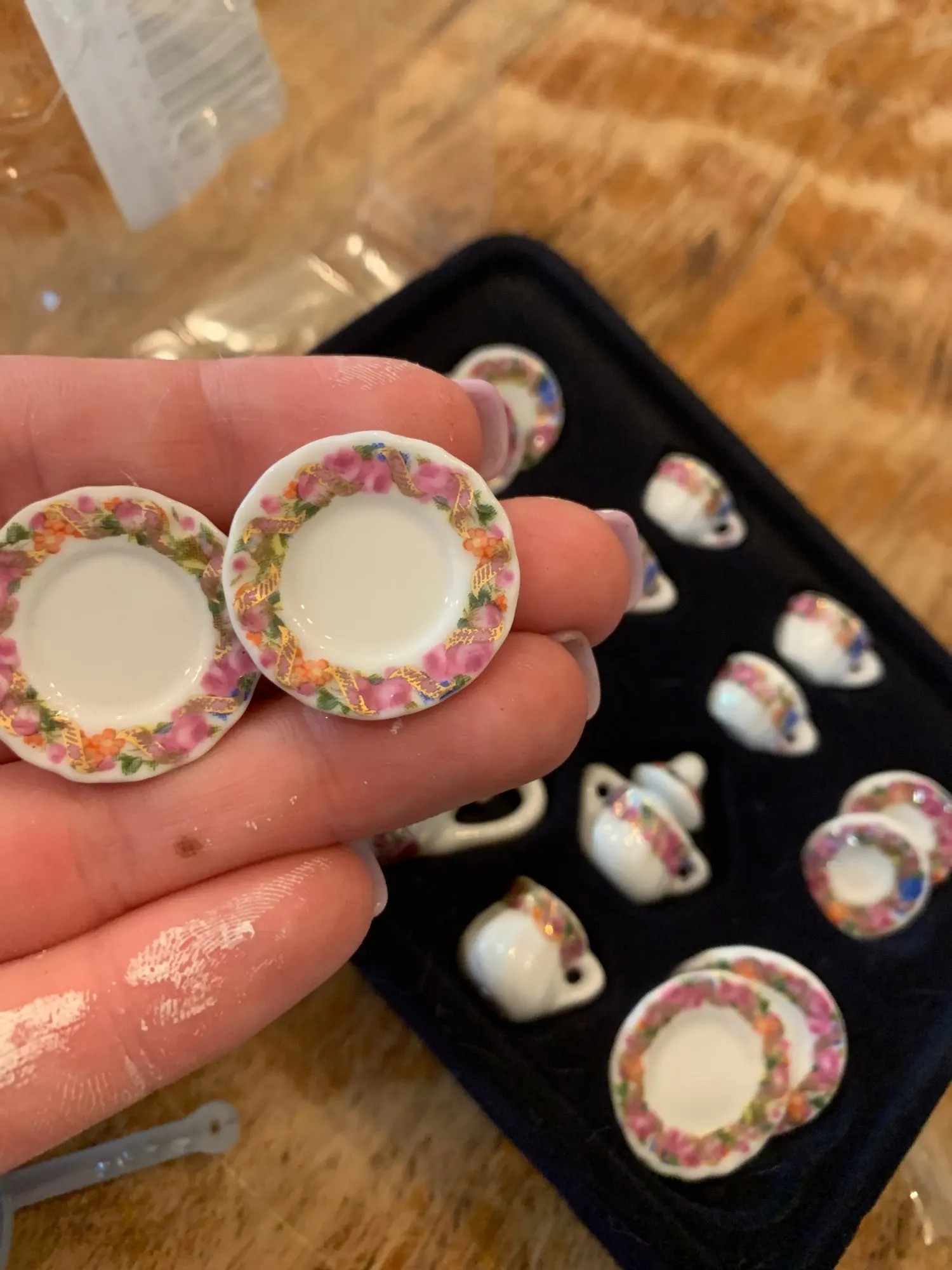 Одна тарелочка разбилась, остальная посуда в наборе не лежала по отсекам, а хаотично была раскидана внутри коробочки.
