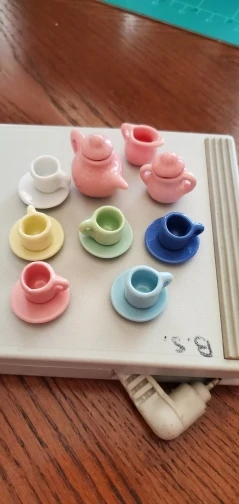 Заказывал по просьбе жены, она увлекается созданием кукольных миниатюр. К сожалению, оценку "5 звёзд" поставить не могу. Первая причина: есть дефекты окраски предметов посуды, прерывистая золотая кайма. Вторая причина: плохая упаковка при пересылке, одна из двух коробок поступила сильно деформированной, теперь предметы посуды негде хранить. Из плюсов могу отметить быструю доставку. Заказ оформил 25.05.2021, а 02.06.2021 получил в постамате СберЛогистика рядом с домом. С продавцом не общался, така как не было необходимости.