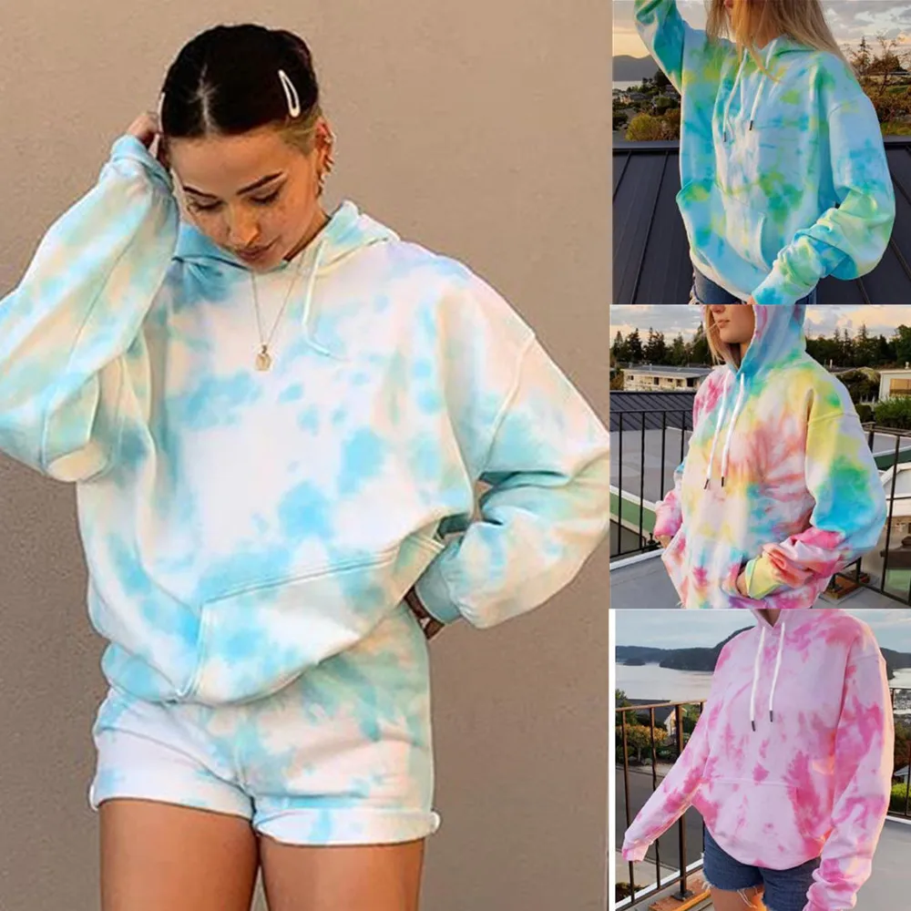 Негабаритных розовый тай-дай толстовка женская модная кофта с принтом свободного кроя с длинным рукавом Уличная Женская одежда с капюшоном; Сезон осень-зима
