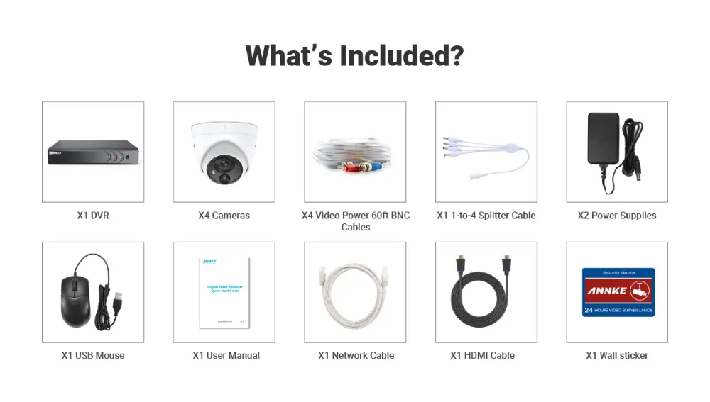 Система видеонаблюдения ANNKE, 4 канала, 5 Мп, H.265 + DVR, 4 камеры 5 Мп