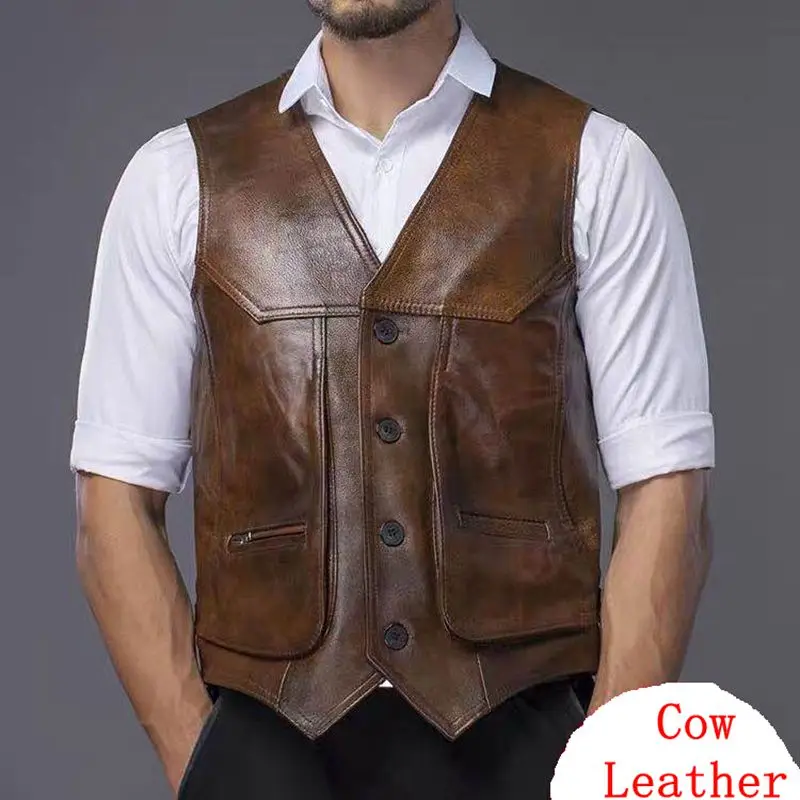 Мужской жилет из натуральной воловьей кожи, мотоциклетный жилет большого размера, байкерская куртка без рукавов, L-8XL