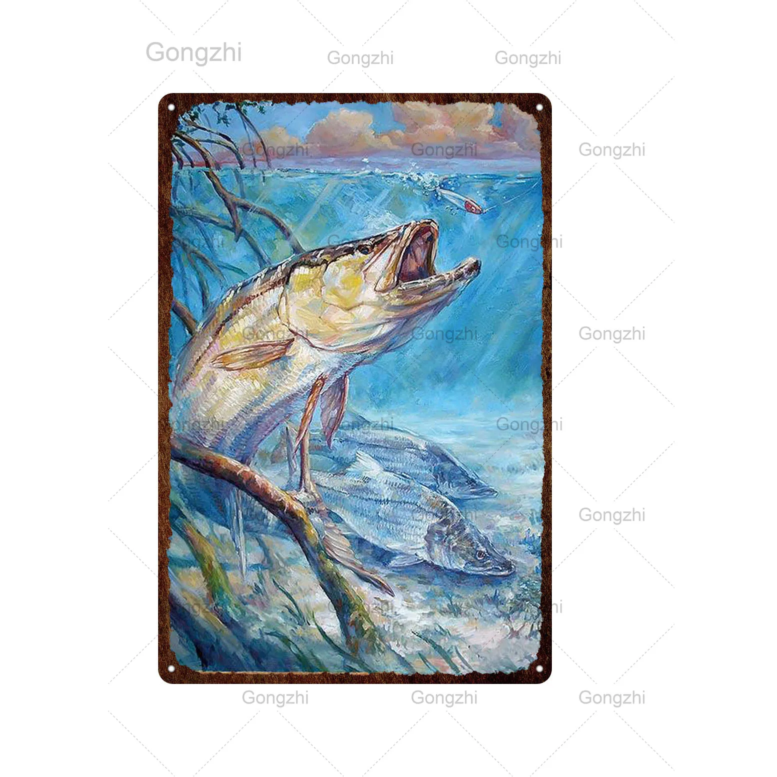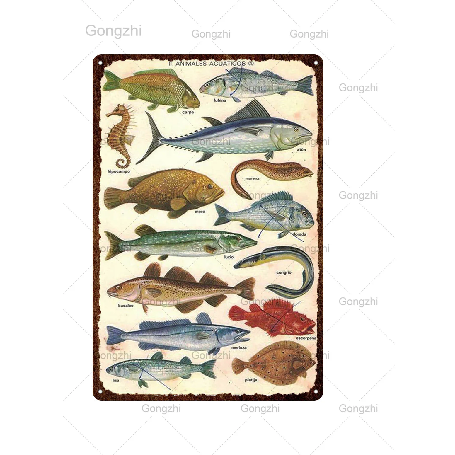 Металлический постер для рыбалки, пластина, морская рыба, винтажный жестяной знак, украшение для кухни и ресторана, домашний декор для стен, железная живопись, 20x30 см
